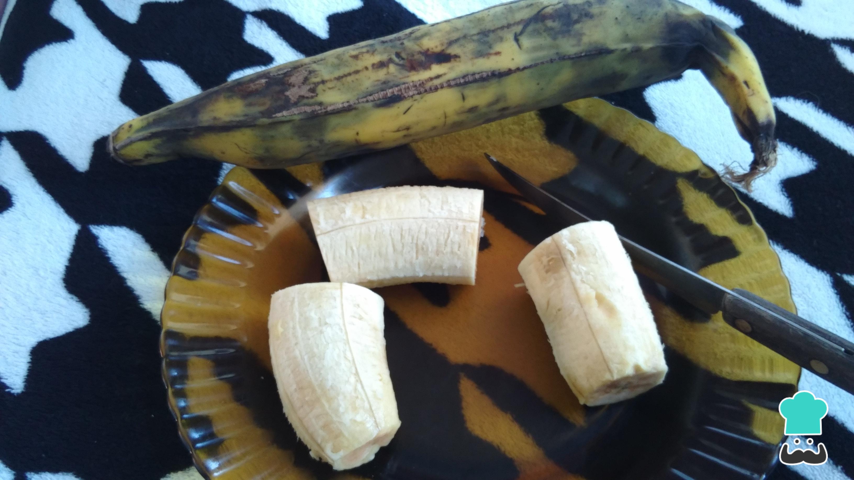 Toma todos los plátanos y retira la cáscara. Pícalos en tercios, o cuartos si los plátanos son muy grandes. En todo caso, procura que las piezas queden más o menos iguales.