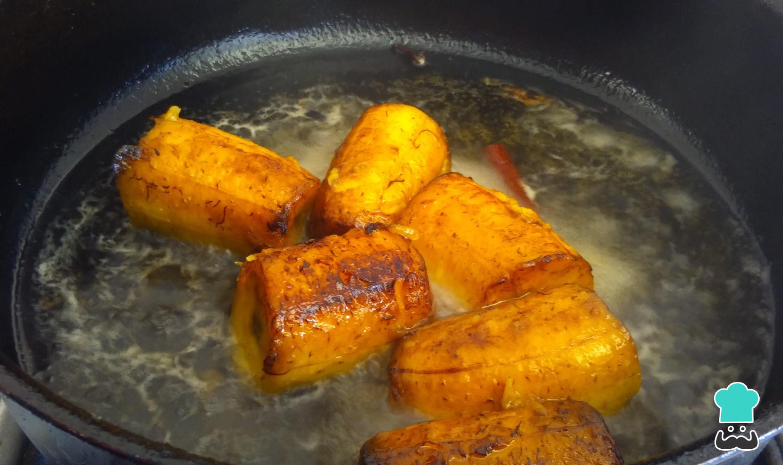 Además, para hacer esta receta de dulce de plátano venezolano solo necesitas plátanos que estén maduros y que no tengan rastros de verde en la cáscara. Eso sí, que tampoco estén tan maduros o casi negros, porque las piezas de plátano se podrían deshacer con la cocción prolongada y la idea es que se conserven más o menos enteras. Lo demás, son ingredientes que tienes siempre en casa.