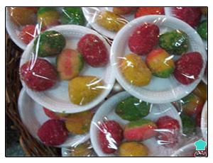 Para el dulce de leche se coloca 2 litros de leche 1 Kg de azúcar y se monta al fuego y se deja hervir batiéndola con cuchara de madera hasta que espese y despegue de la olla, se deja enfriar y se preparan los dulcitos en forma de fruta o vegetales se dejan secar y se pintan con colorante comestible, se pasan por azúcar y están listo para el deleite.