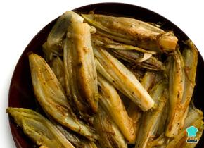 Limpiar las endibias y eliminarles el tronquito interno con un cuchillo pues suele ser amargo.