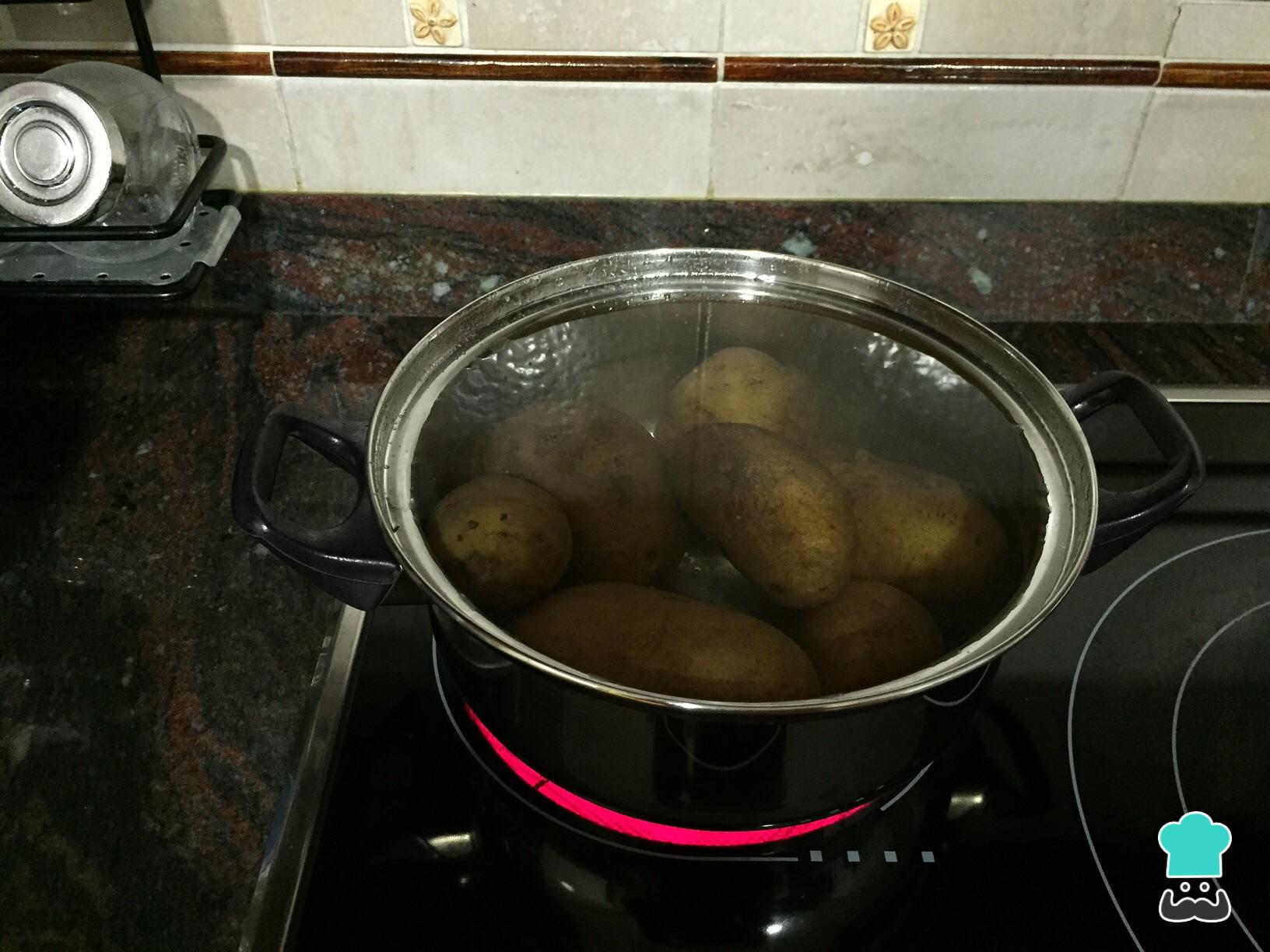 En primer lugar coceremos las patatas y las iremos pinchando hasta que estén blandas por dentro, entonces estarán en su punto.