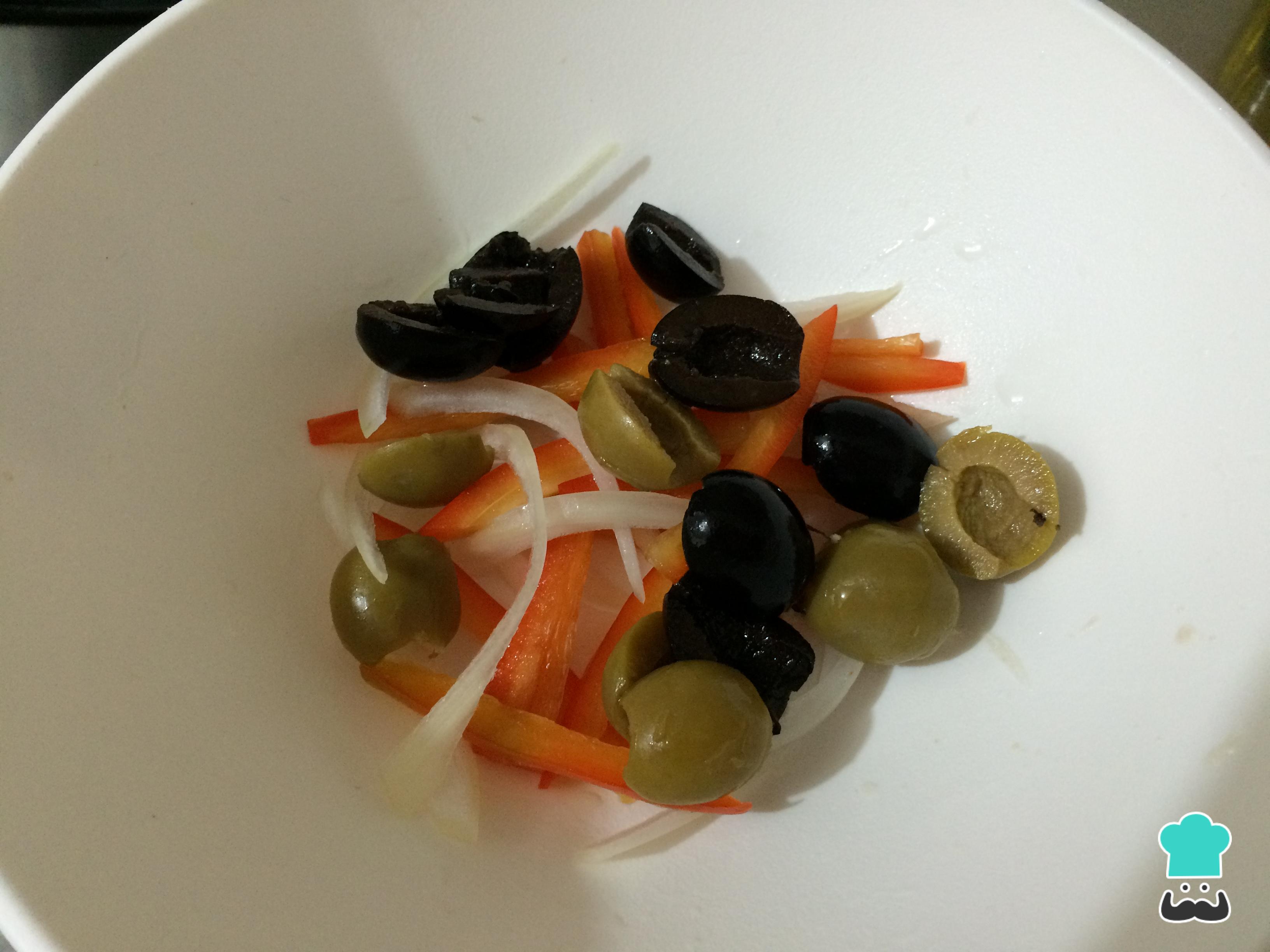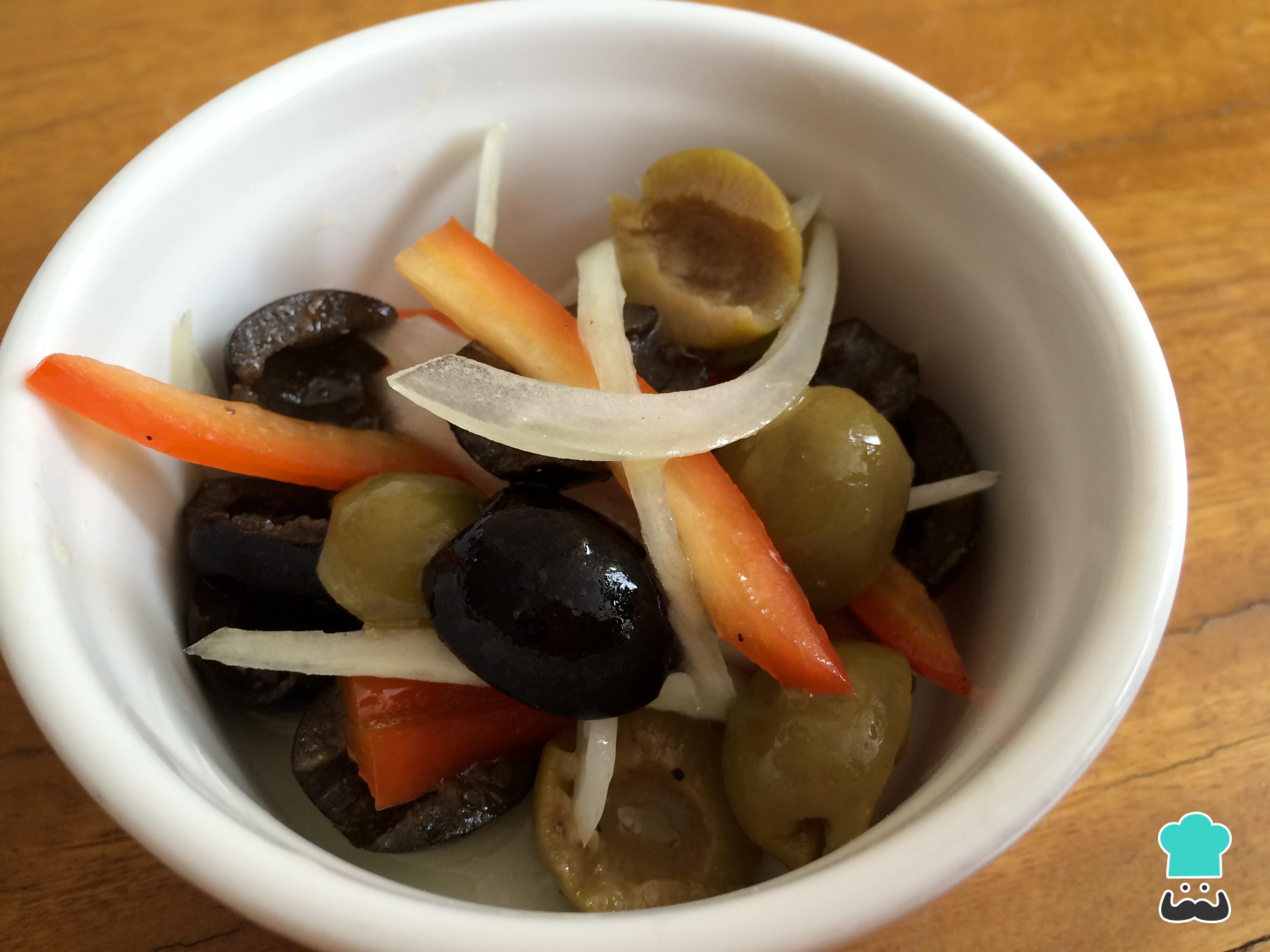 En esta receta aprenderás a realizar una deliciosa ensalada de aceitunas fácil y rápida. Muchas veces nos apetece consumir aceitunas en una reunión con galletas saladas y si vienen acompañadas con otros ingredientes te aseguro que quedarán mucho mejor. Sigue el paso a paso de esta receta y repara este aperitivo fácil en menos de 15 minutos.