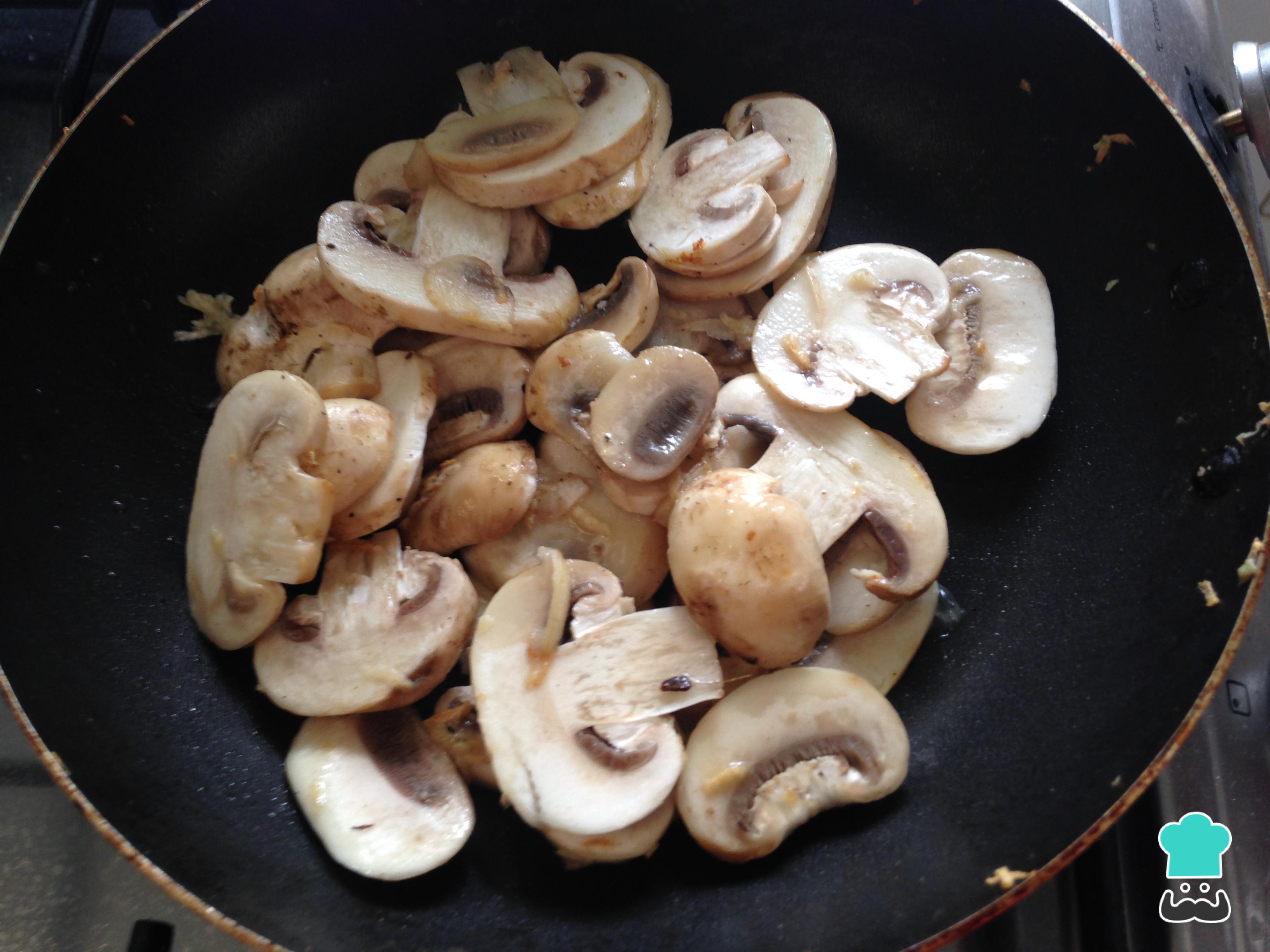 En la misma sarten cocinamos los champiñones cortados en laminas durante 4 minutos agregamos sal y pimienta.