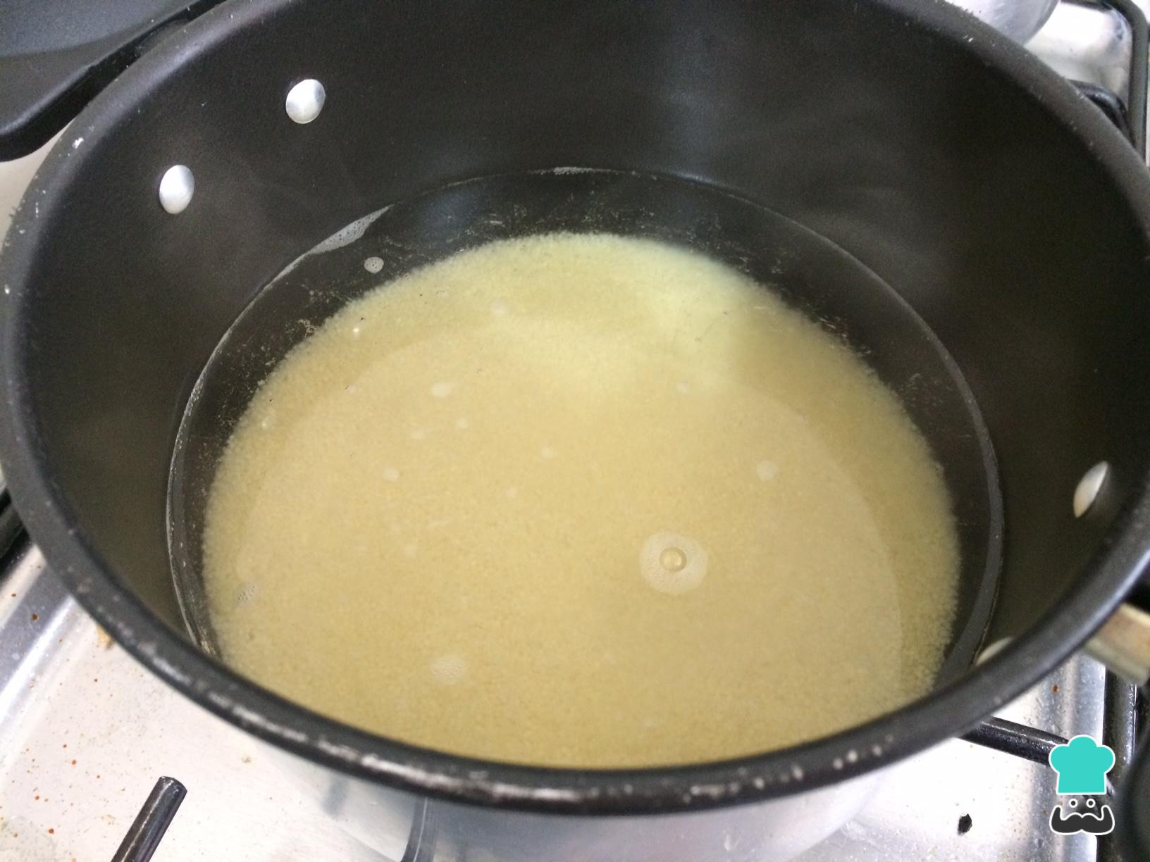 Para empezar, disponer en una olla agua y una pizca de sal, cuando hierva apagar el fuego y agregar el cuscús. Revolver y cocinar durante 3 minutos, después escurrir y reservar.