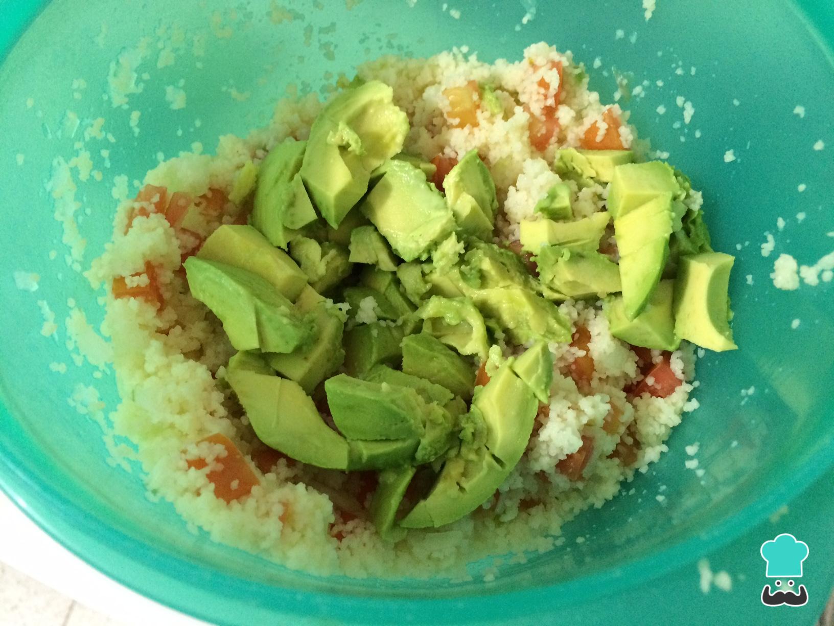 Finalmente servir la ensalada de cuscús y aguacate y disfrutar a la hora del almuerzo. Esta receta es ideal para una comida de fin de semana o si prefieres servirla como guarnición, la puedes probar con un pescado frito.