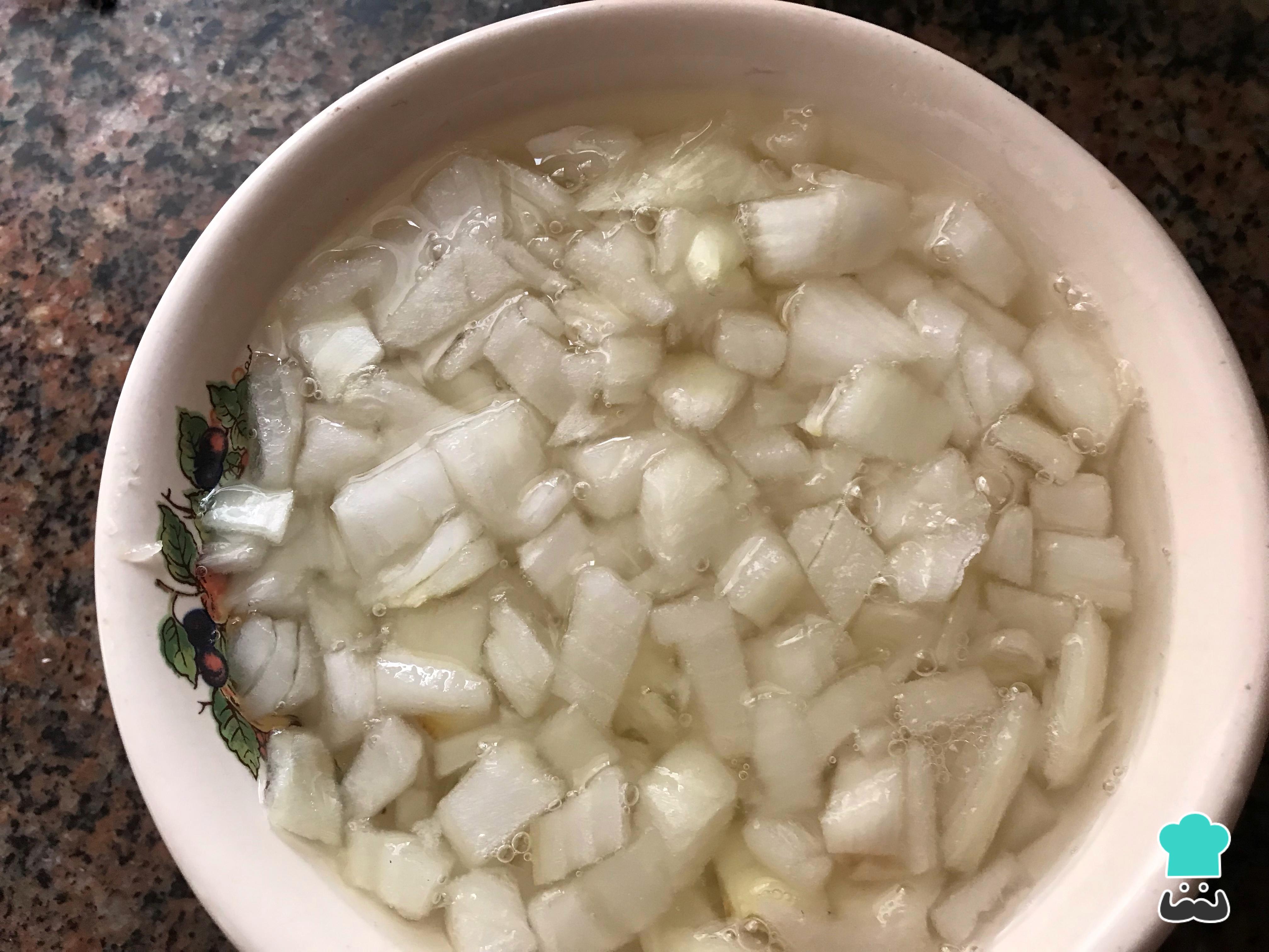 ¿Te preguntas cómo hacer una ensalada de garbanzos veraniega? Pues bien, el primer paso para preparar esta ensalada saludable es pelar, cortar y sumergir la cebolla en agua hirviendo. De esta manera, su sabor será más suave. Puedes enjuagarla en agua fría y repetir el proceso, cuantas más veces lo repitas, más suave quedará su sabor.