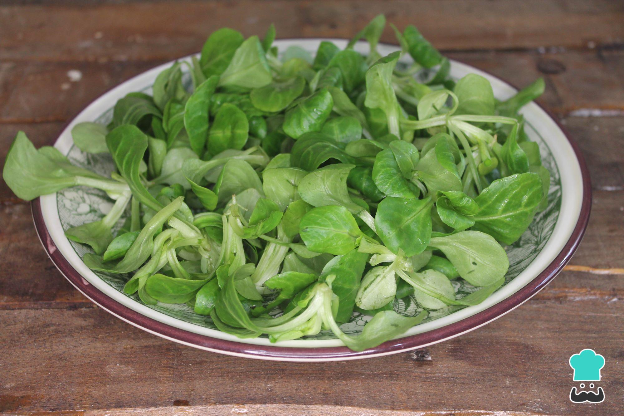 Añade en el plato los canónigos donde vayas a presentar la ensalada, añade un poco de sal y un chorrito de aceite de oliva.