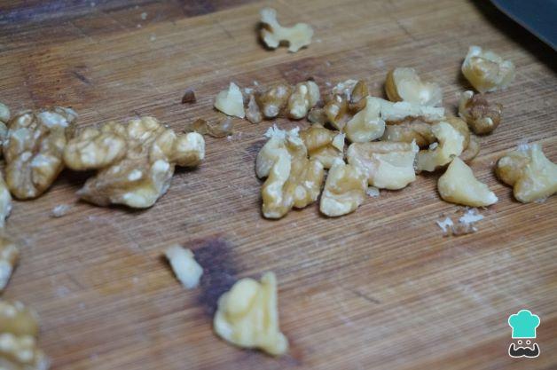 Una vez peladas las nueces, trocea. Si te gustan con más sabor, las puedes tostar un poco en la sartén.