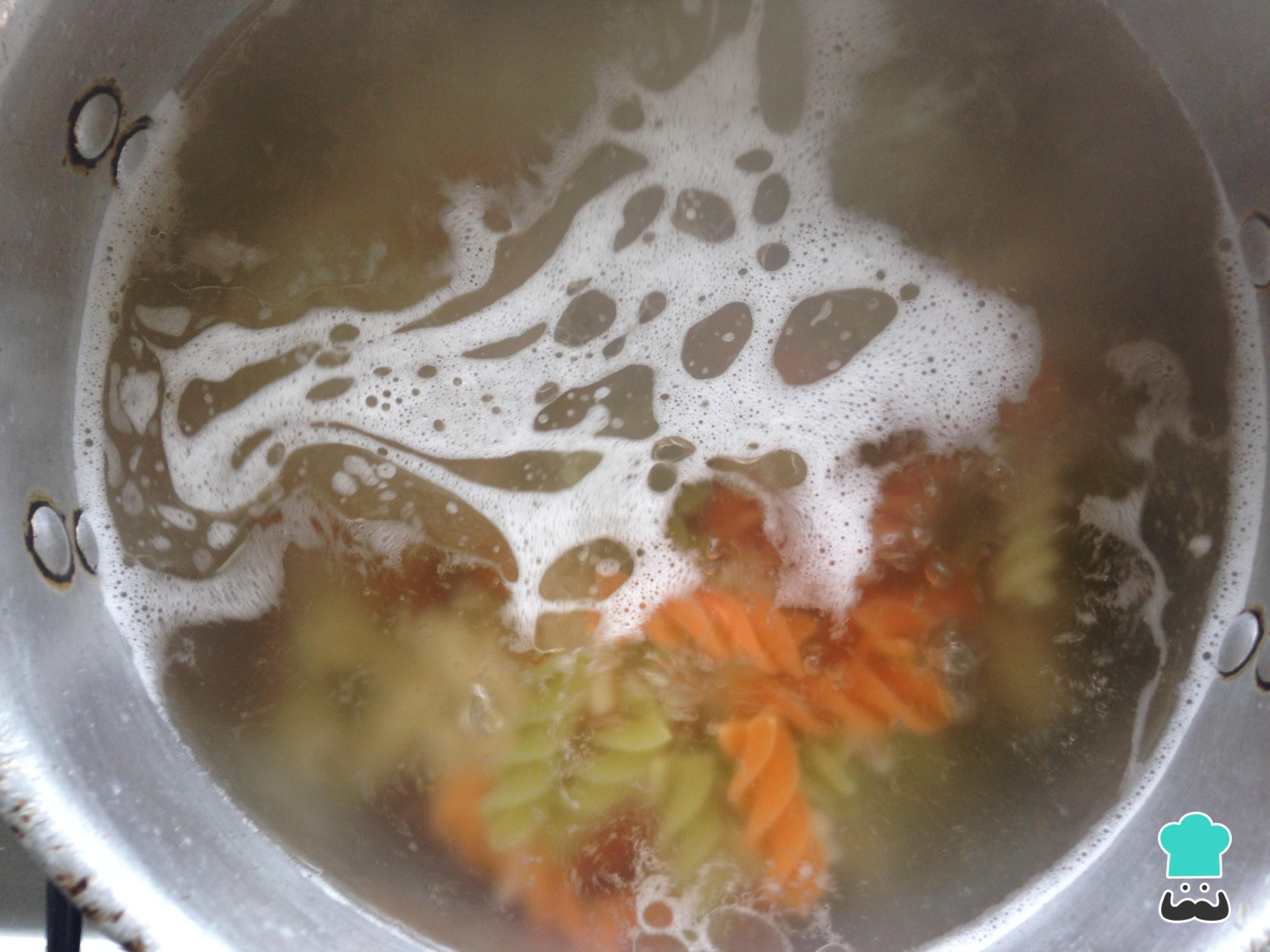En abundante agua hirviendo con un toque de aceite y sal cocinamos la pasta hasta que este blanda.