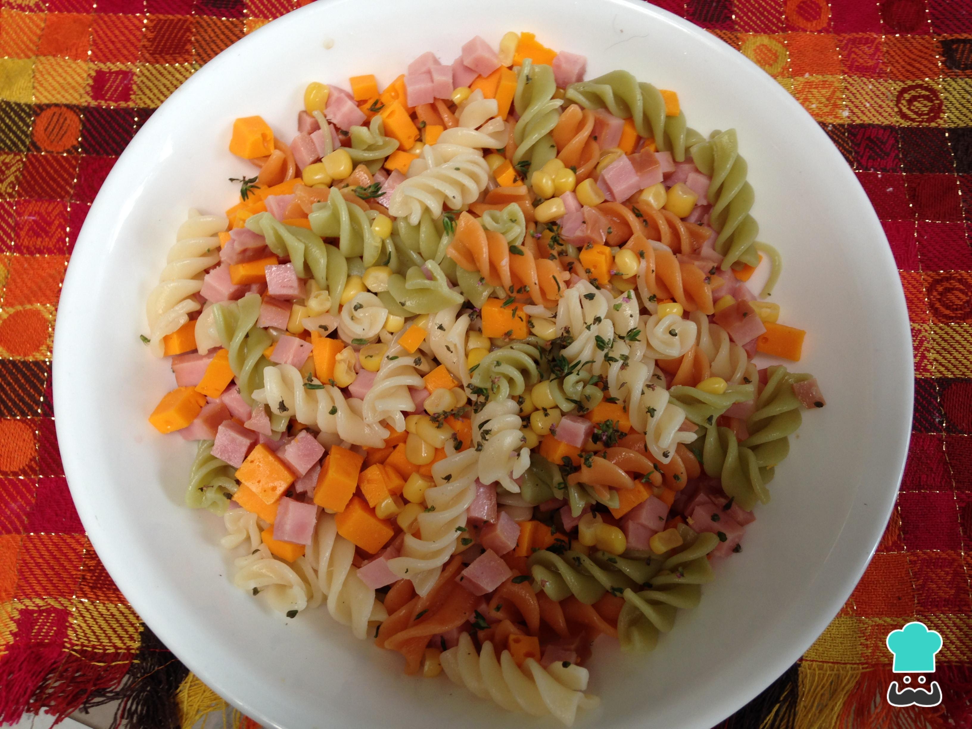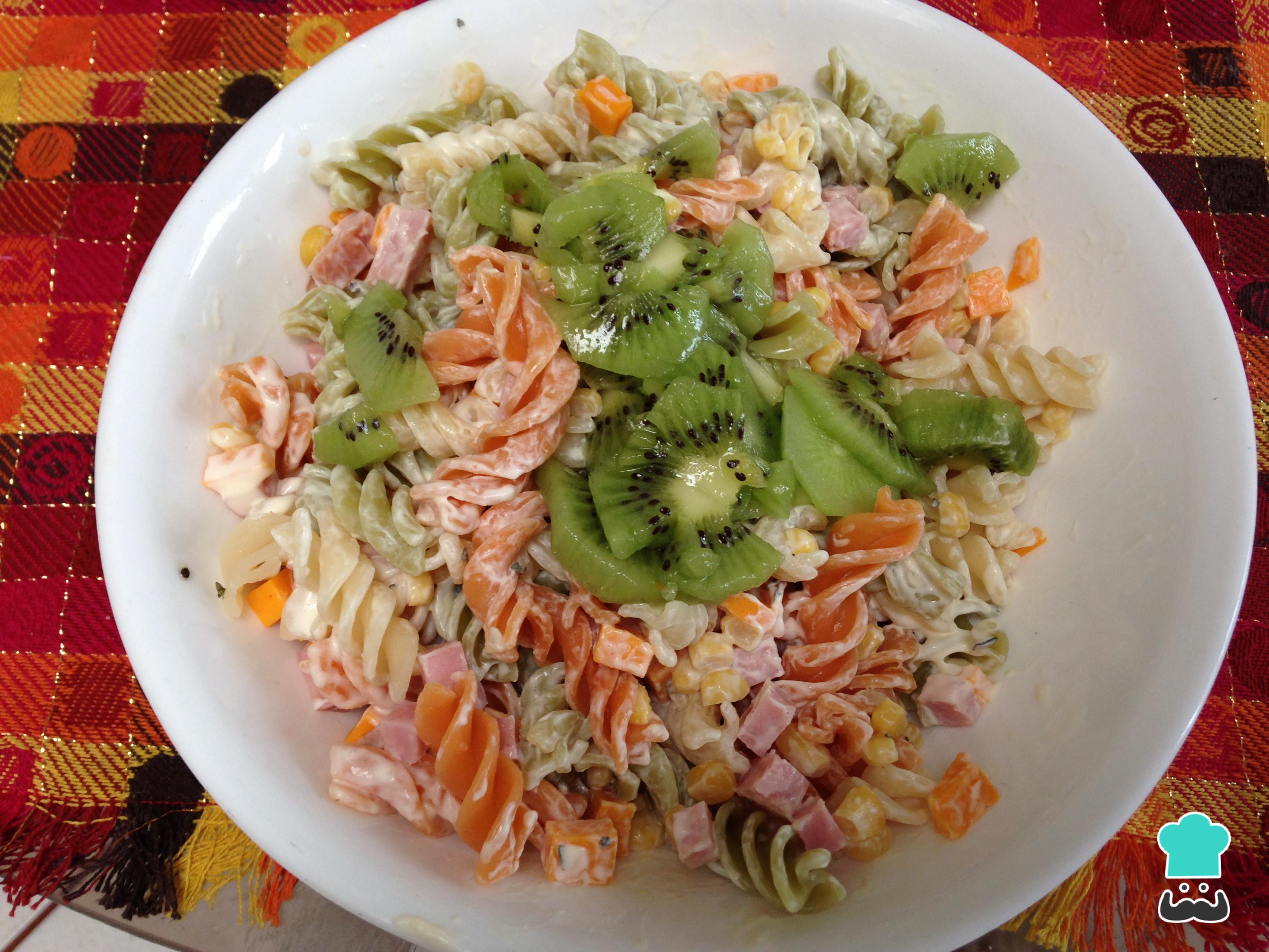 Servir y degustar con trozos de manzana, esta receta de ensalada de pasta con frutas es ideal para compartir en familia o con amigos.si te gusto esta receta o tienes alguna duda, déjanos tus comentarios.