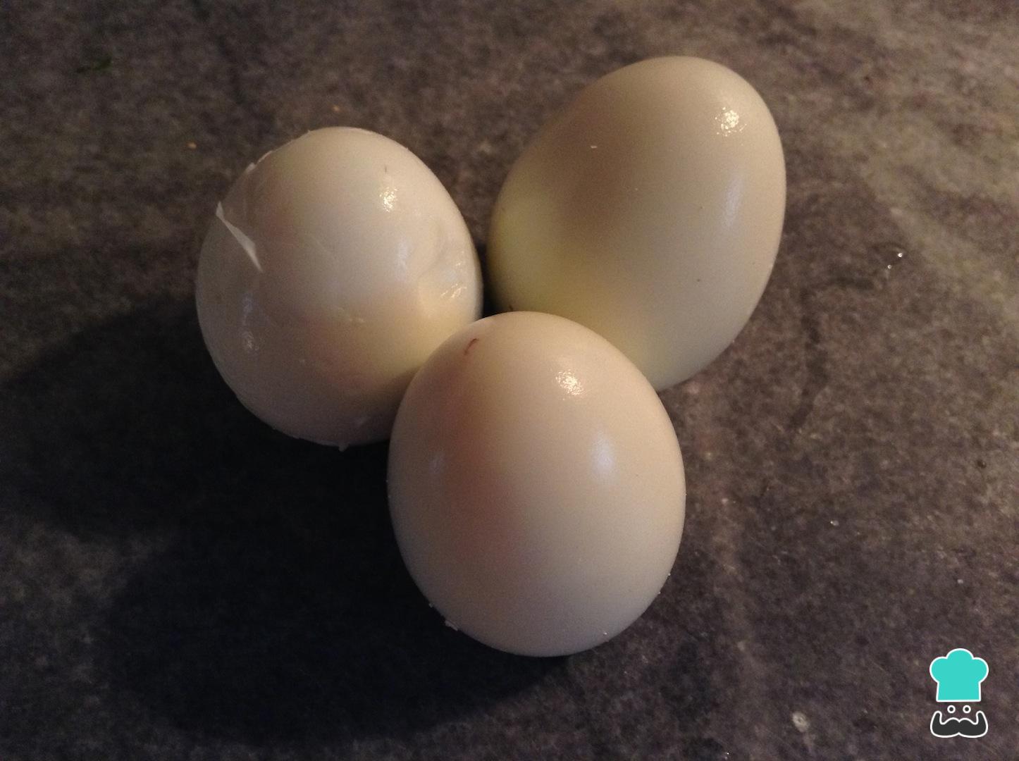 Pela los huevos una vez cocinados y resérvalos un momento.