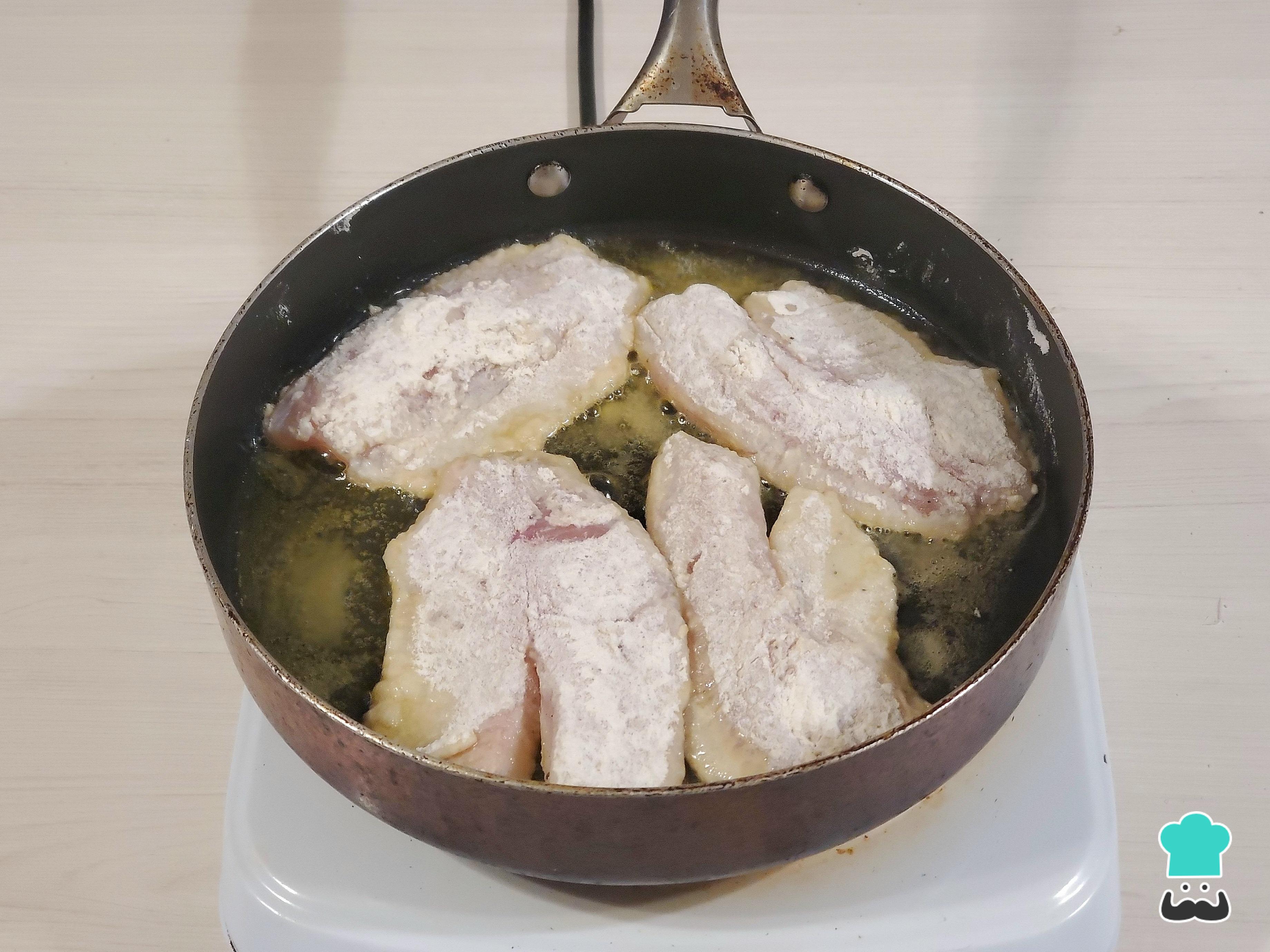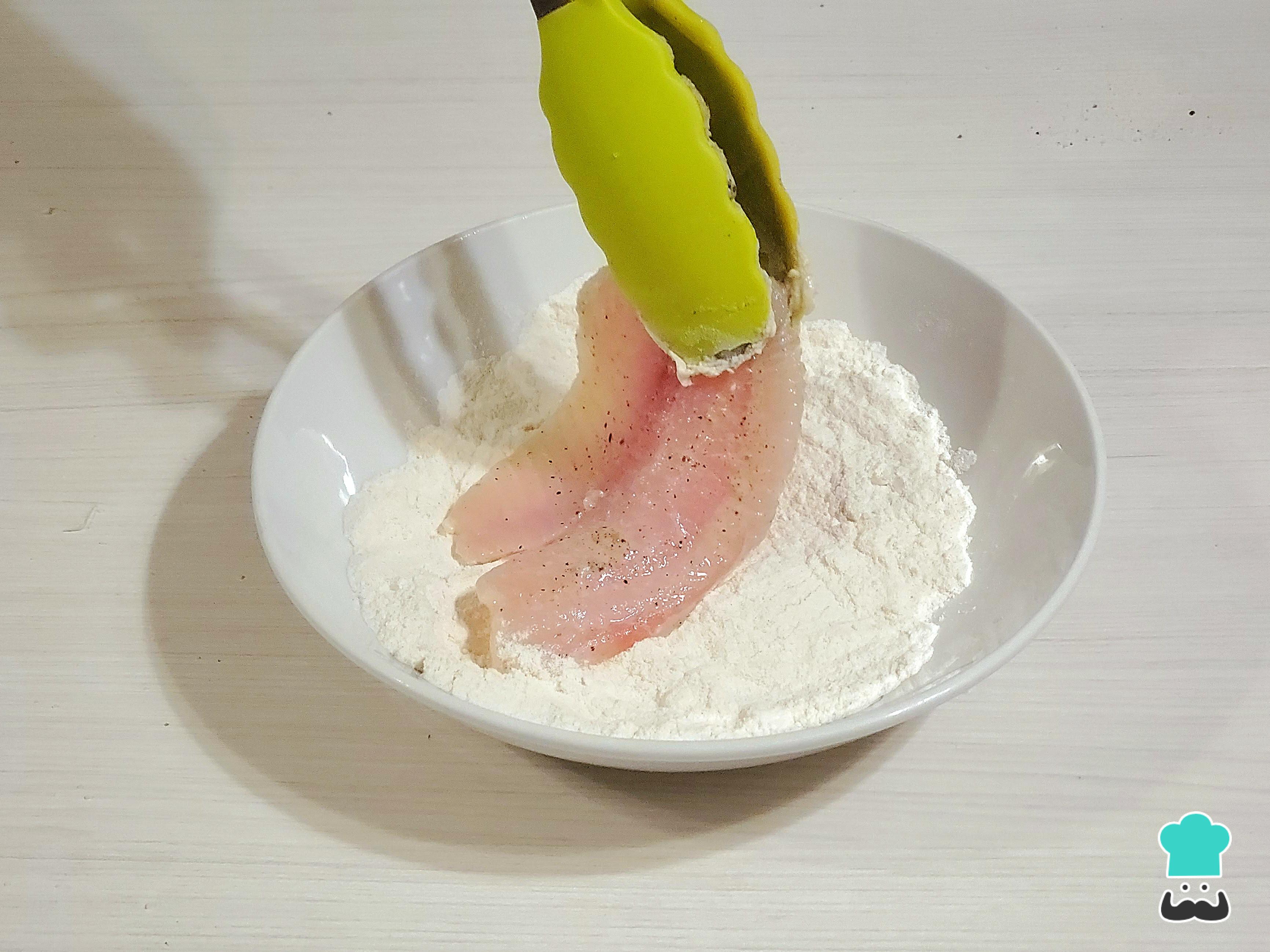 Transcurrido el tiempo de reposo, enharina estos filetes y sacúdelos para dejar caer el exceso.