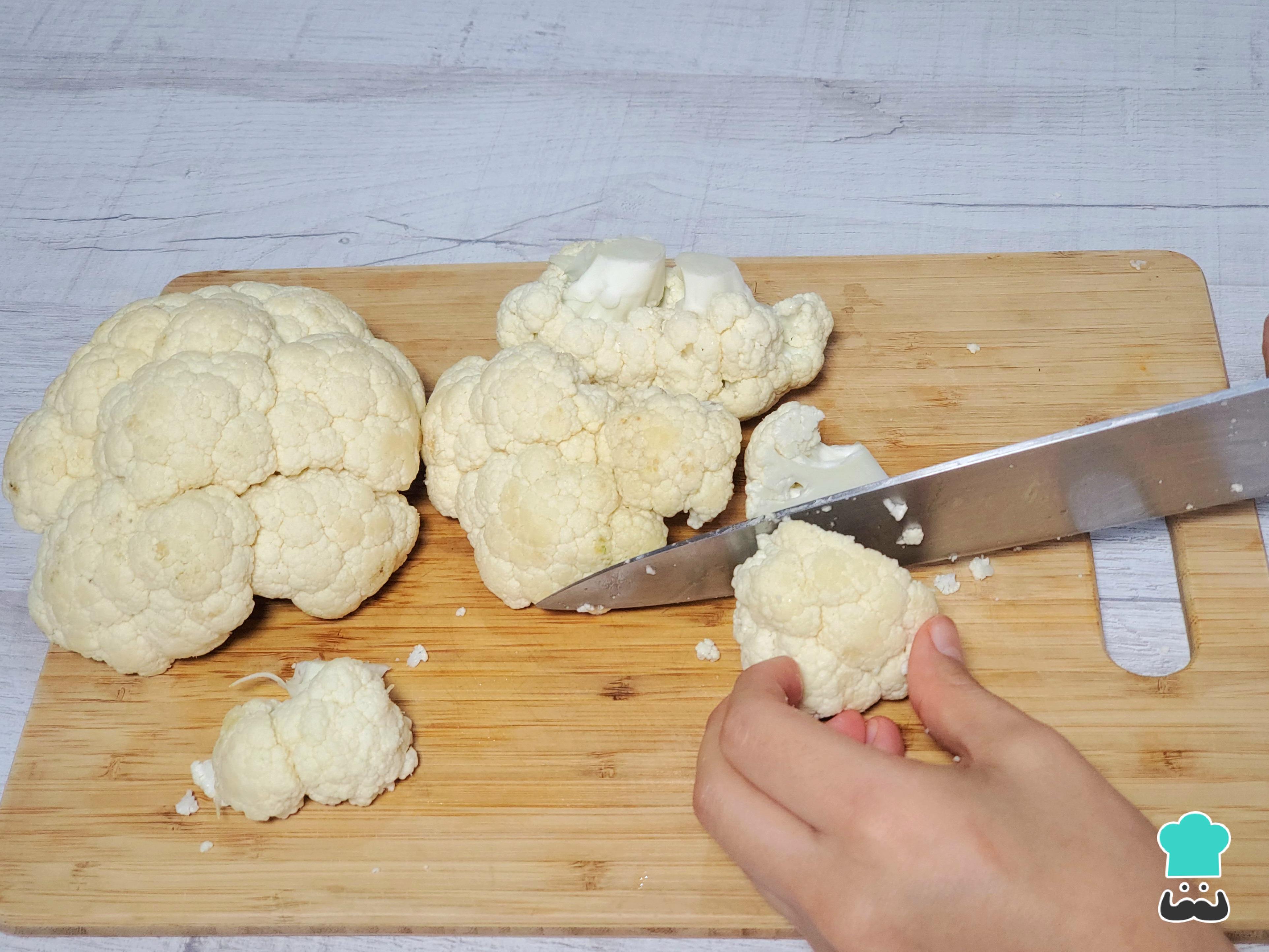 Separa la coliflor en ramitos pequeños del tamaño de un bocado.