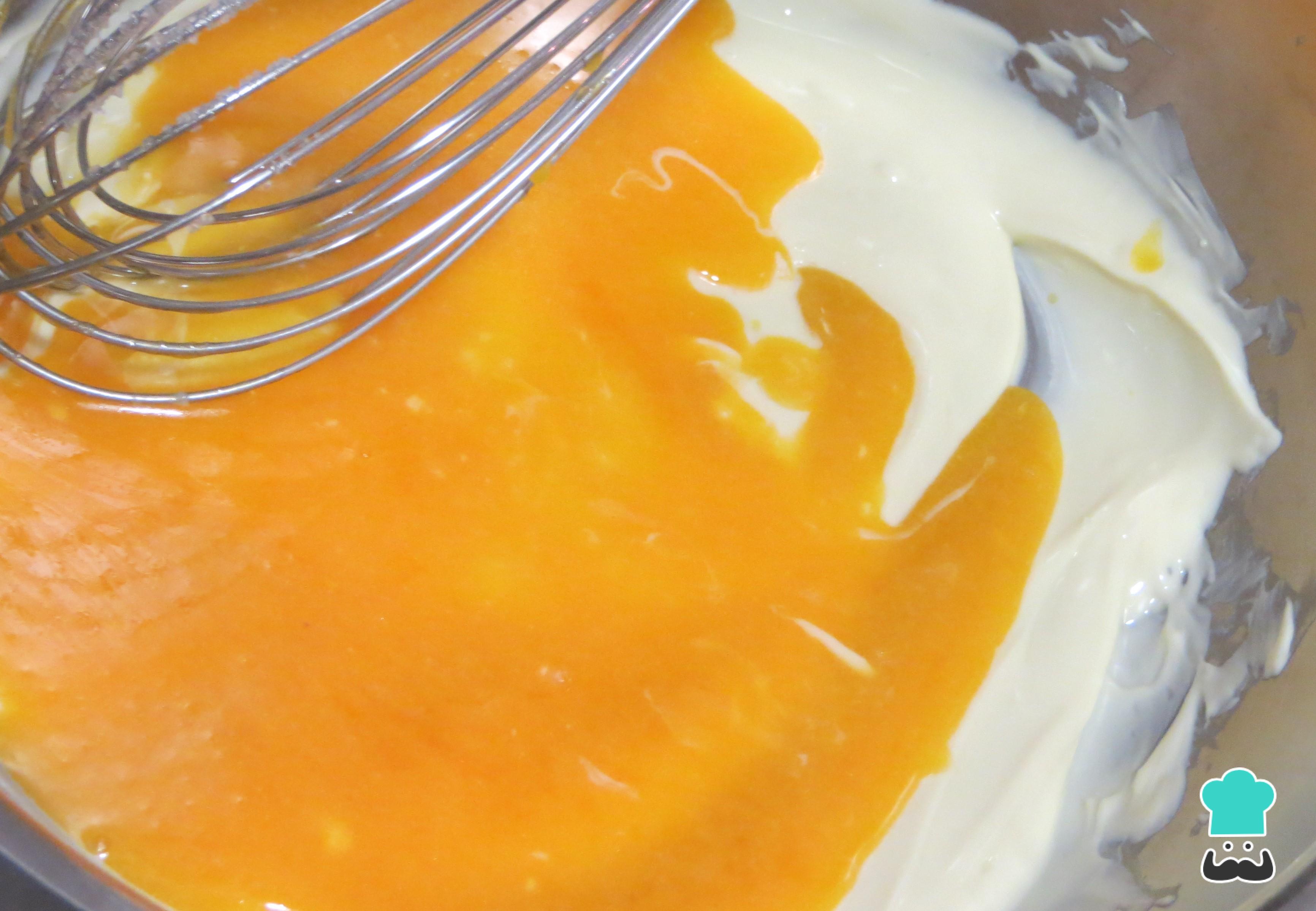 A continuación, bate las yemas de huevo en un bol junto con el queso crema. Revuelve hasta que los dos ingredientes se integren por completo formando una salsa ligeramente espesa. Aunque estamos usando queso Philadelphia para esta receta, puedes usar cualquier otro queso tipo queso crema para hacer los espaguetis con queso.