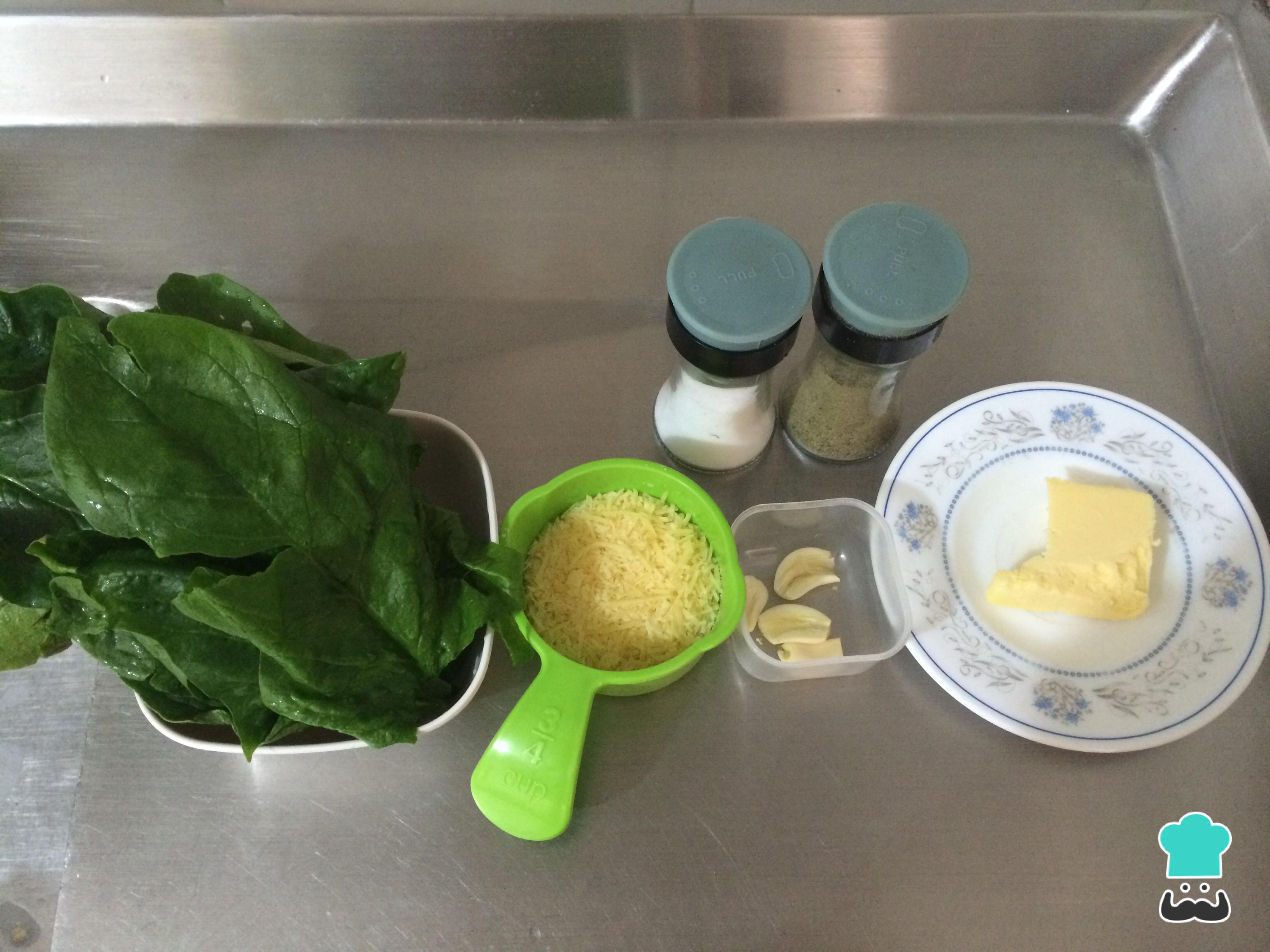 Antes de realizar las espinacas al ajillo, el primer paso es alistar todos los ingredientes.