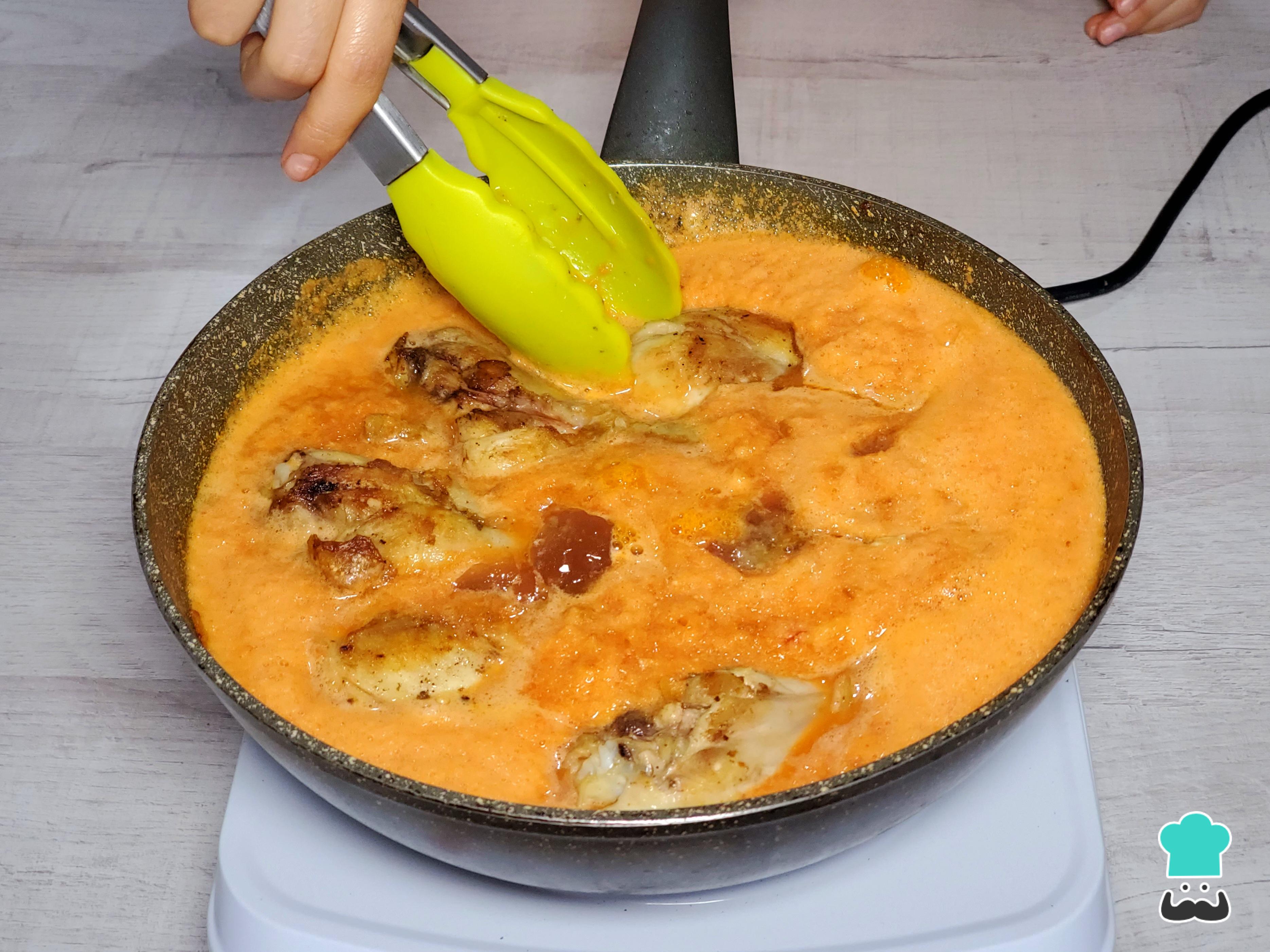 Coloca las piezas de pollo en la olla y, si es necesario, añade más caldo de pollo hasta cubrirlas. Agrega una cucharadita de sal, tapa la olla y deja que hierva a fuego bajo durante unos 25 minutos o hasta que el pollo esté completamente cocido. Mantén la temperatura baja para evitar que el líquido se evapore rápidamente y tener salsa muy densa.