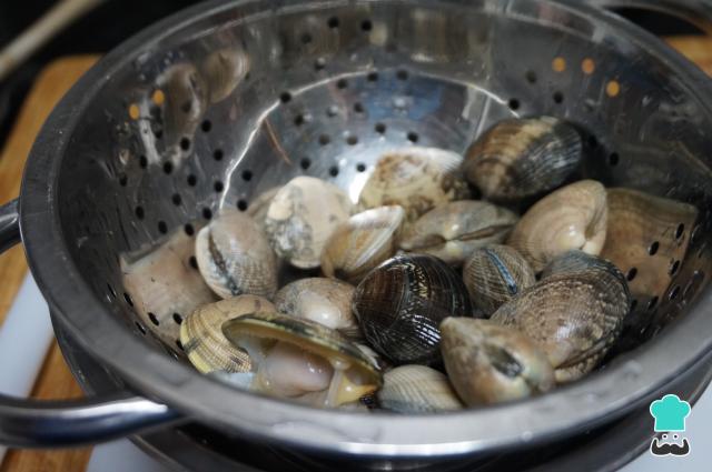 Por otro lado, pon las almejas en agua con dos cucharadas de sal durante una o dos horas.
