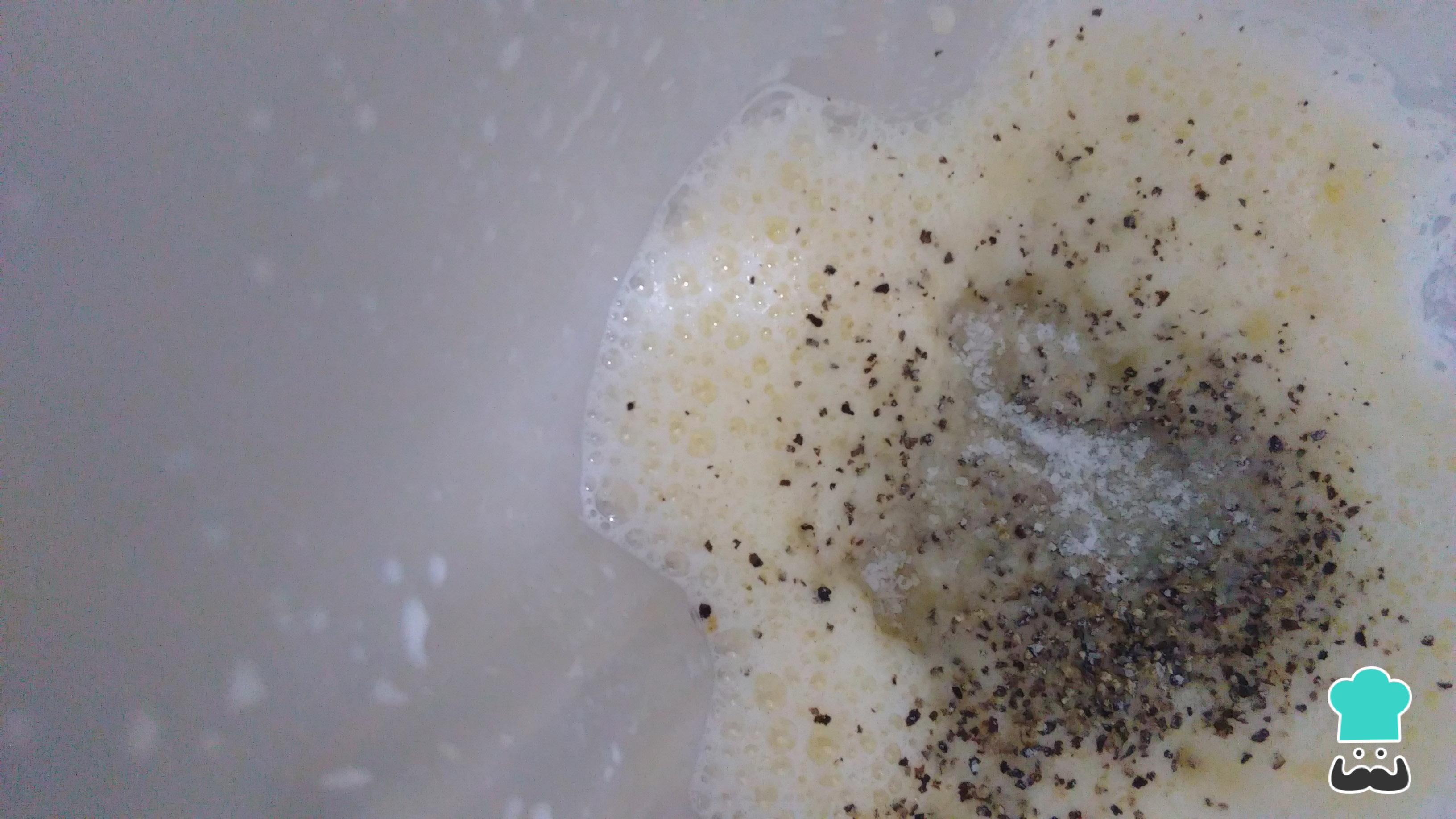 Añade la sal y la pimienta. Si gustas, también puedes usar orégano.