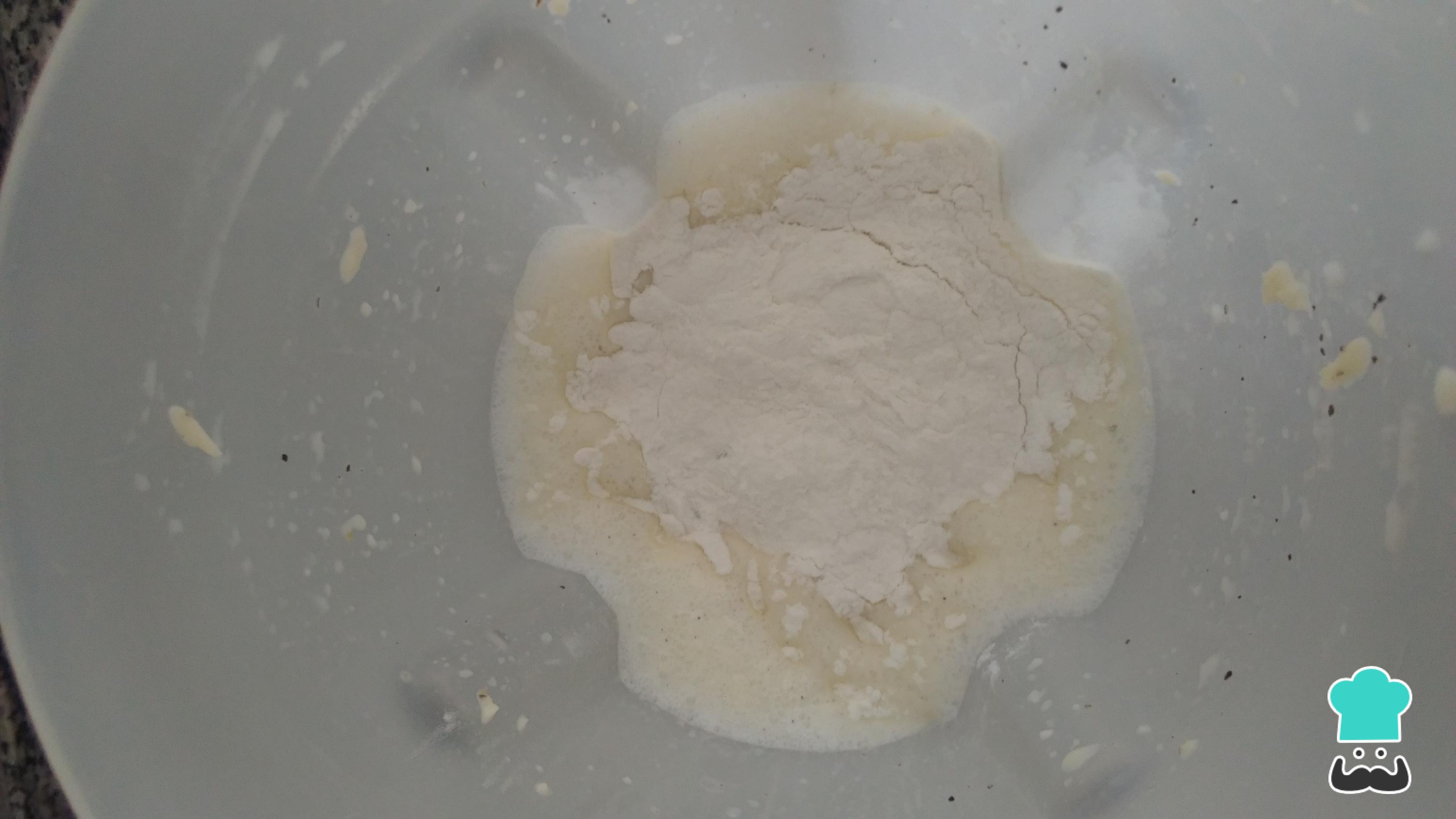Ahora, adiciona la harina. Licua todo muy bien para integrar completamente la harina.