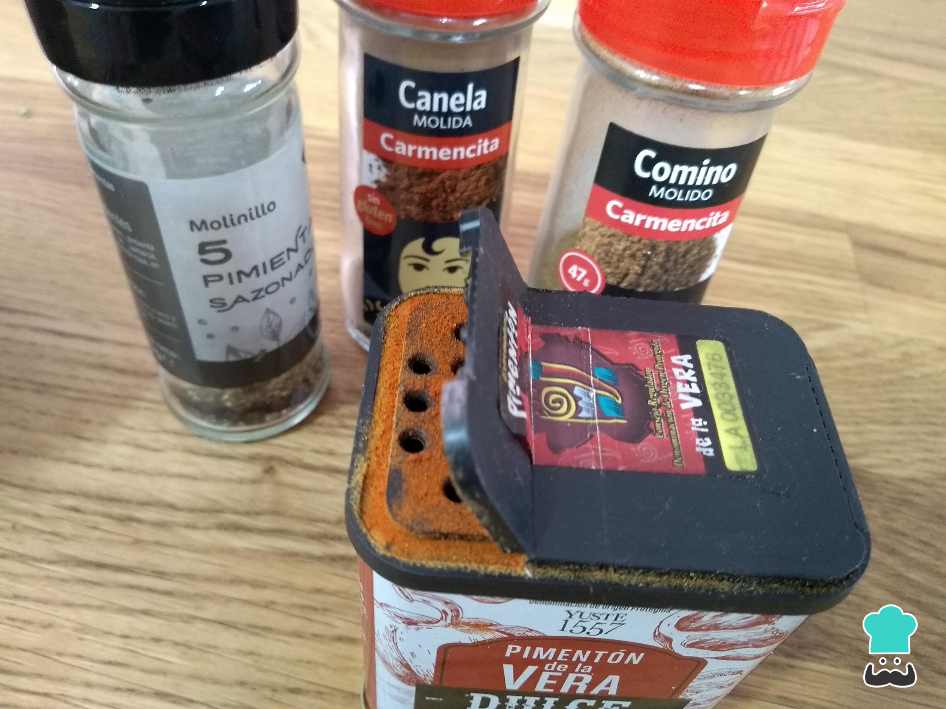 A continuación, agrega las especias a los garbanzos: la pimienta molida negra, la canela, el comino, la sal y el pimentón. Si quieres añadir o quitar alguna, puedes hacerlo, pero estas son las especias más utilizadas para darle un toque delicioso al falafel.