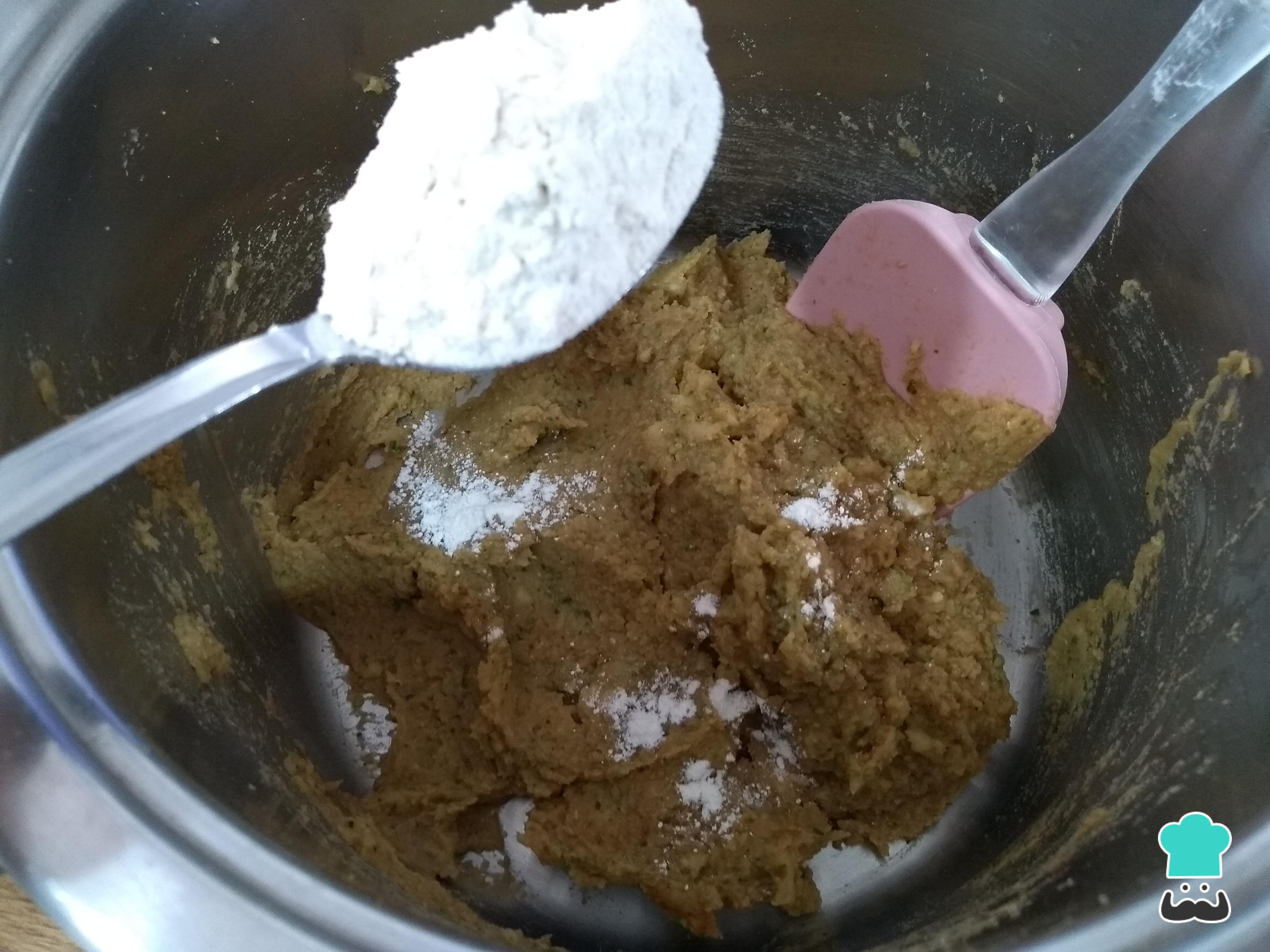 Machaca la mezcla hasta que te quede una pasta de garbanzos medio aplastados. Si prefieres, puedes también molerlos en su totalidad. Agrega entonces la harina para que tome más consistencia. También puedes usar pan rallado en su lugar.