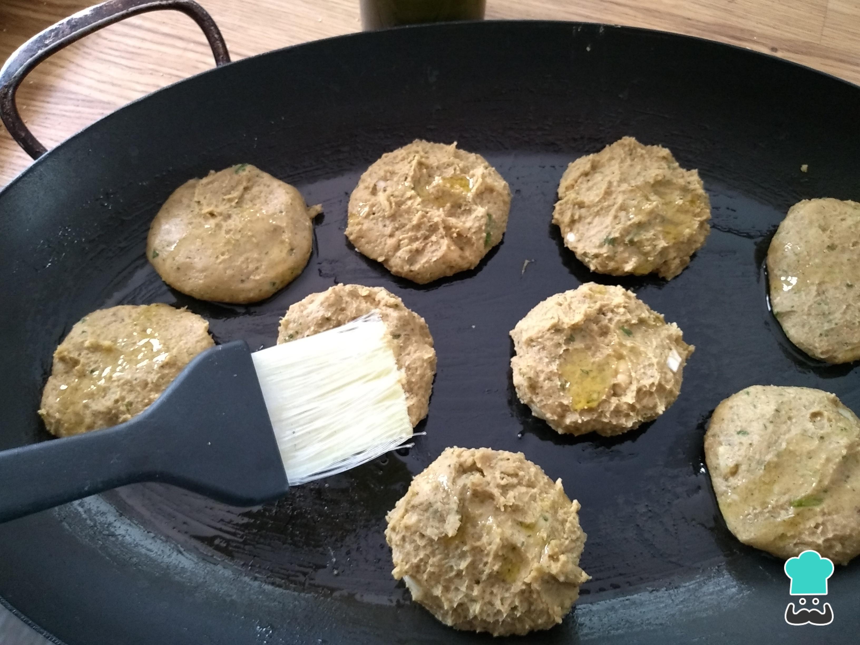 Se mezcla todo hasta que esté integrado y se forme una pasta maleable. Haz bolas aplastadas del tamaño de una pelota de golf, deben tener un grosor aproximado de 1 centímetro.