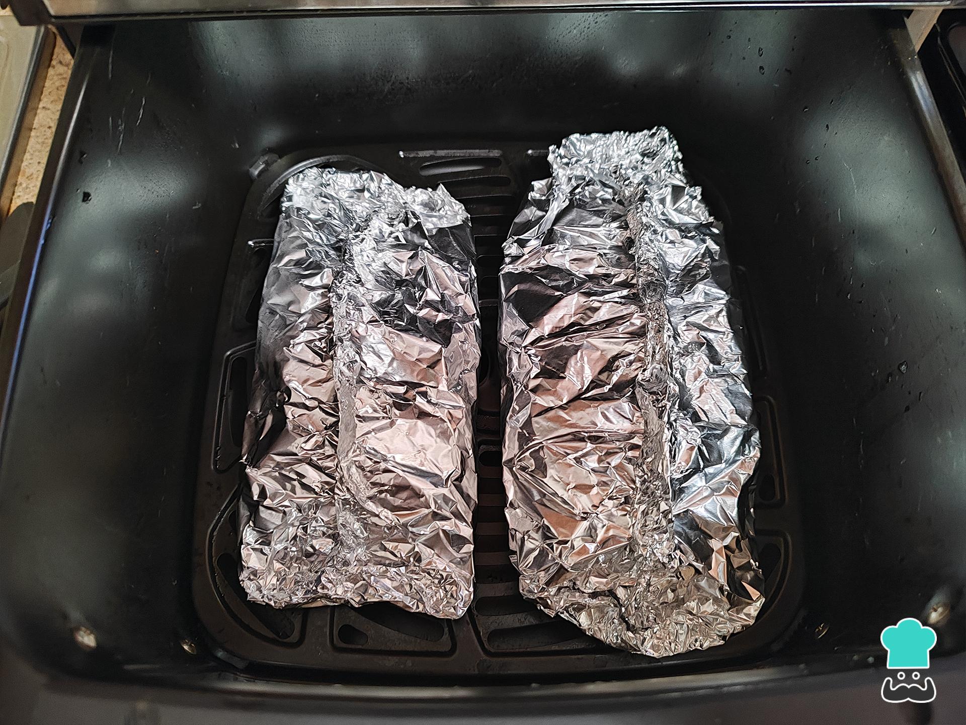 Cierra el empapelado y dobla el papel sellando muy bien por la parte superior, esto evitará que los jugos escapen. Es importante dejar un espacio dentro para que el vapor pueda circular y se cocine bien todo.