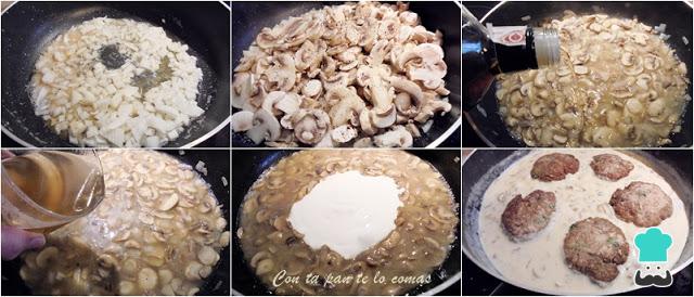 Cómo hacer Filetes rusos en salsa de champiñones: