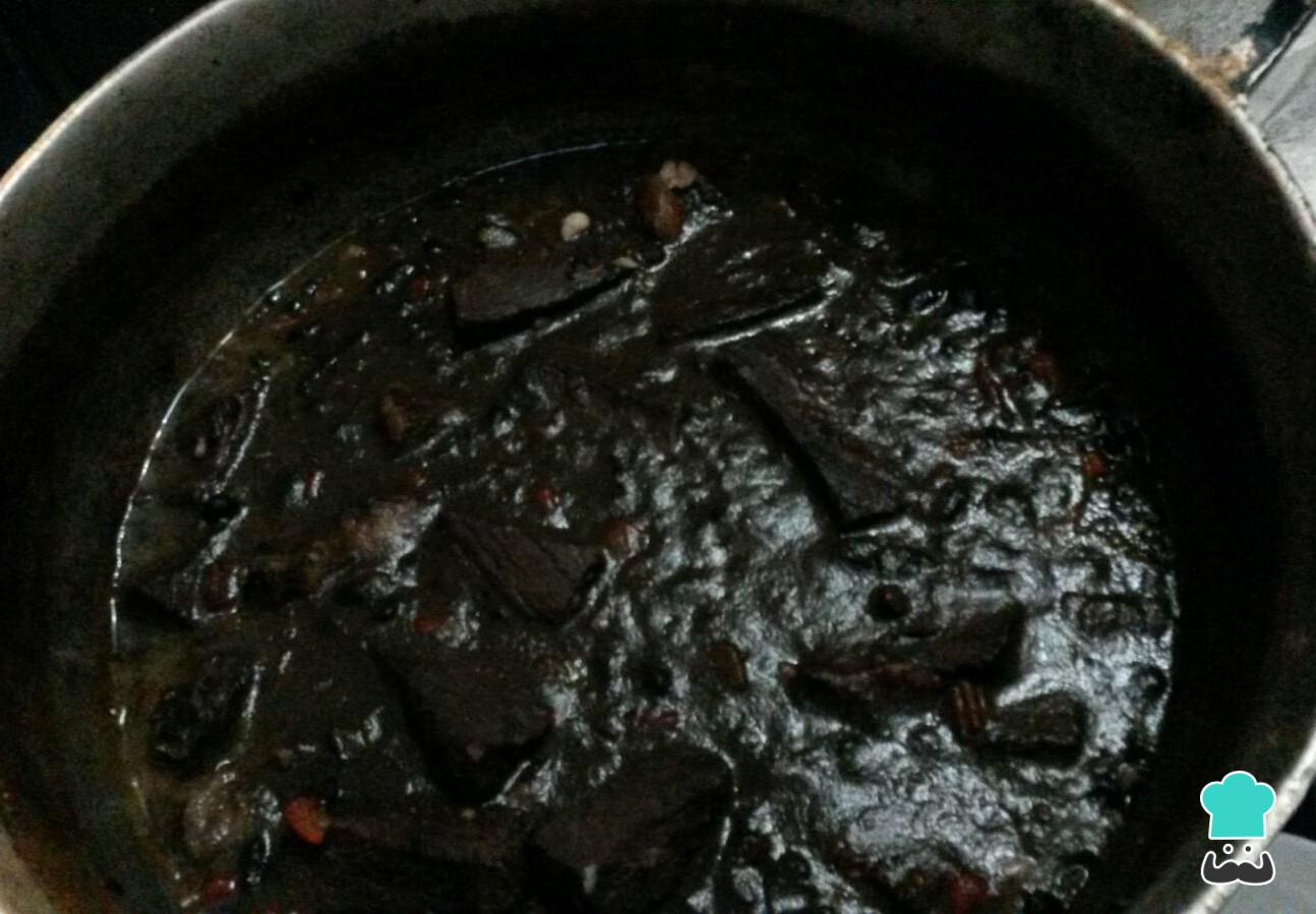 Cuando empiece a hervir, separa dos tazas del caldo de las caratoras y reserva. Mientras, continua con la cocción hasta que estén a gusto y la carne esté completamente hecha. Las caraotas pueden quedar con un caldo muy líquido o más espeso, de las dos formas están deliciosas.
