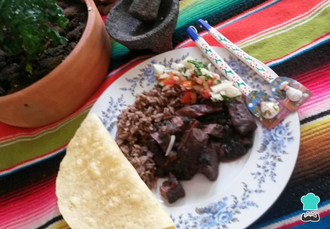 Para comer el frijol con puerco, sirve en el plato el arroz, un poco de caraotas negras con carne, pico de gallo y tortillas de maíz. Espero que les guste esta receta mitad mexicana y mitad venezolana tanto como a todos en mi casa. ¡Buen provecho!