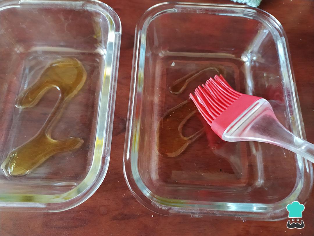 Precalienta el horno a 200 ºC. Engrasa los moldes para el funche con aceite o mantequilla.