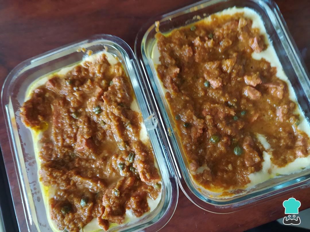 Tapa el guiso con el resto del funche. Puedes agregar queso parmesano encima.