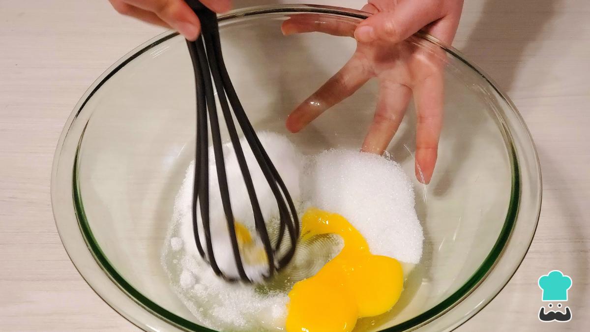 Empieza colocando en un bowl el huevo junto con el endulzante. Puedes elegir uno amable con la glucosa en sangre, como el monk fruit o la stevia, o si prefieres un sabor más tradicional, incorpora miel. Remueve bien utilizando un tenedor o un batidor de globo.