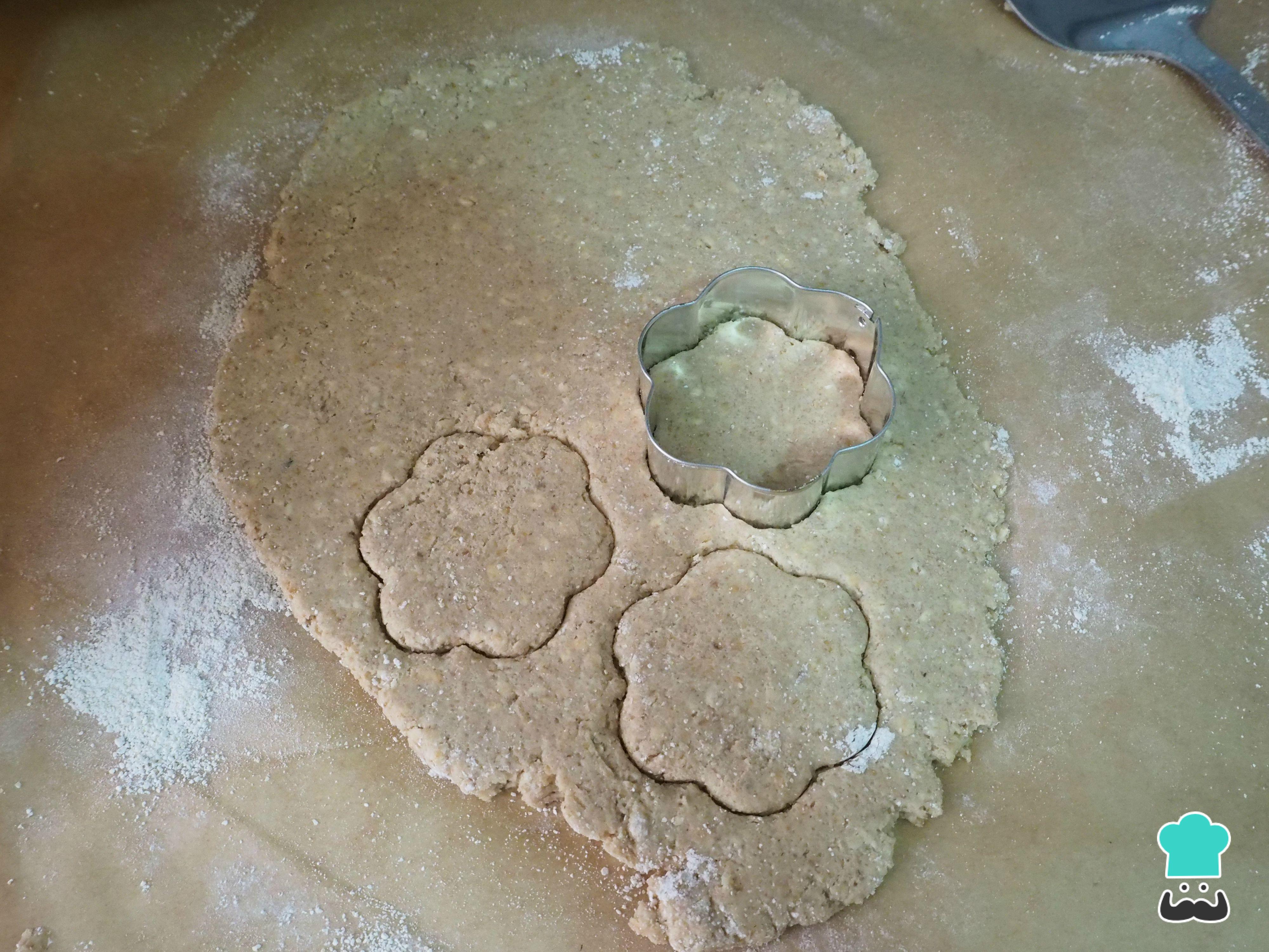 Pasado el tiempo de reposo, estiramos la masa con un rodillo y cortamos las galletas con la forma y tamaño deseados.