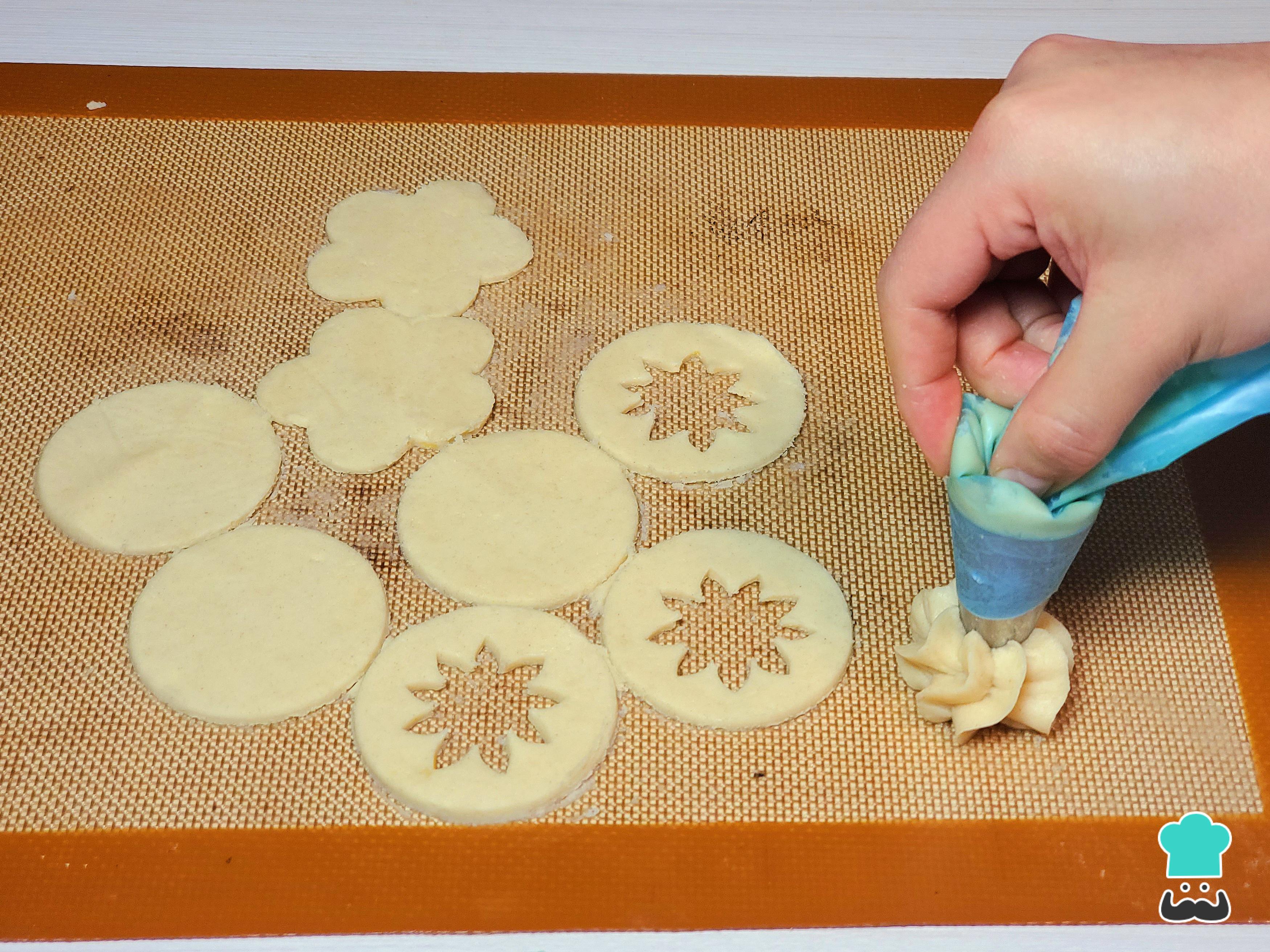 Cuando la masa esté bien firme, córtala de la forma que más te guste o, si prefieres (sin estirarlas ni congelarlas) coloca la masa dentro de una manga con una boquilla estrella. Proporciona la clásica forma de las galletas danesas que vienen en latas.