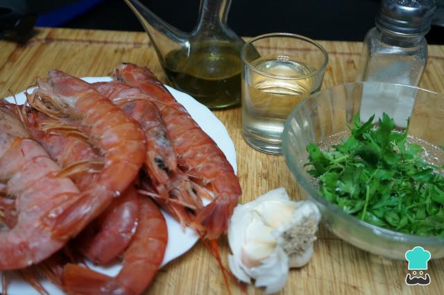 Prepara los ingredientes para hacer las gambas al cava. Esta misma receta puedes hacerla con langostinos y con camarones, solo debes tener en cuenta que el tiempo de cocción varía en función del tamaño del producto. Así mismo, es importante resaltar que este es un plato que se debe cocinar justo al momento de comer.