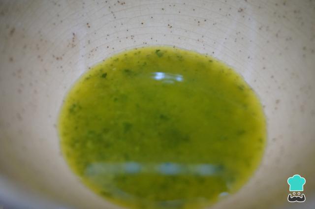 Pica los ajos y el perejil y añade un poco de aceite de oliva. Si haces las gambas en cazuela, pica un poco más de perejil y ajo y añade un pelín más de aceite para que te quede más salsa.