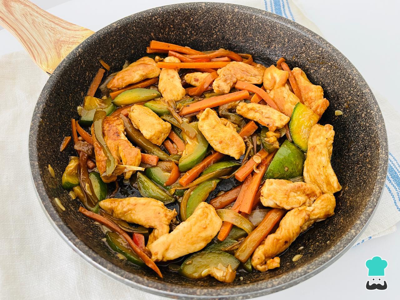 El sabor de este saltado de pollo con verduras es bastante intenso, por lo que recomendamos acompañarlo con una guarnición suave. Por ejemplo, puedes servir arroz blanco. También podría ser fideos, papas al natural o incluso quinoa, un cereal con un alto aporte de nutrientes y fibra. Para cocinarla, recomendamos enjuagarla y luego hervirla unos 8 minutos hasta que se hinche y cambie su textura a una suave y cremosa.