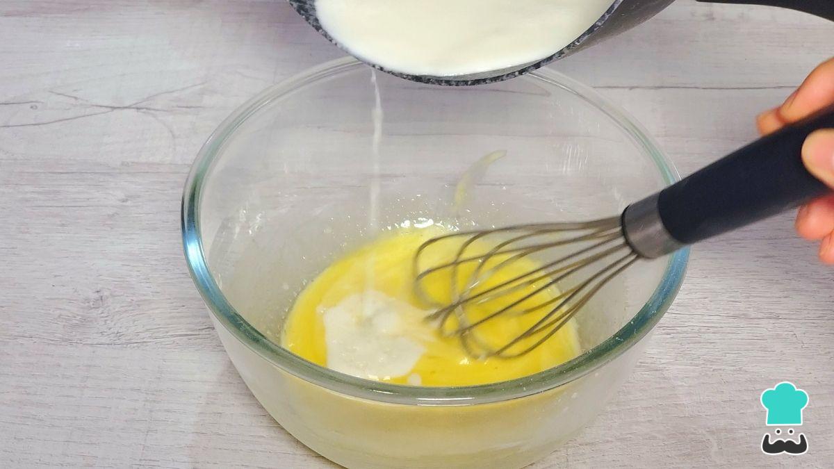 En el momento de incorporar la leche caliente sobre las yemas es fundamental hacerlo poco a poco y batiendo con rapidez, de esta manera se evita que el huevo se coagule y se formen grumos indeseados.