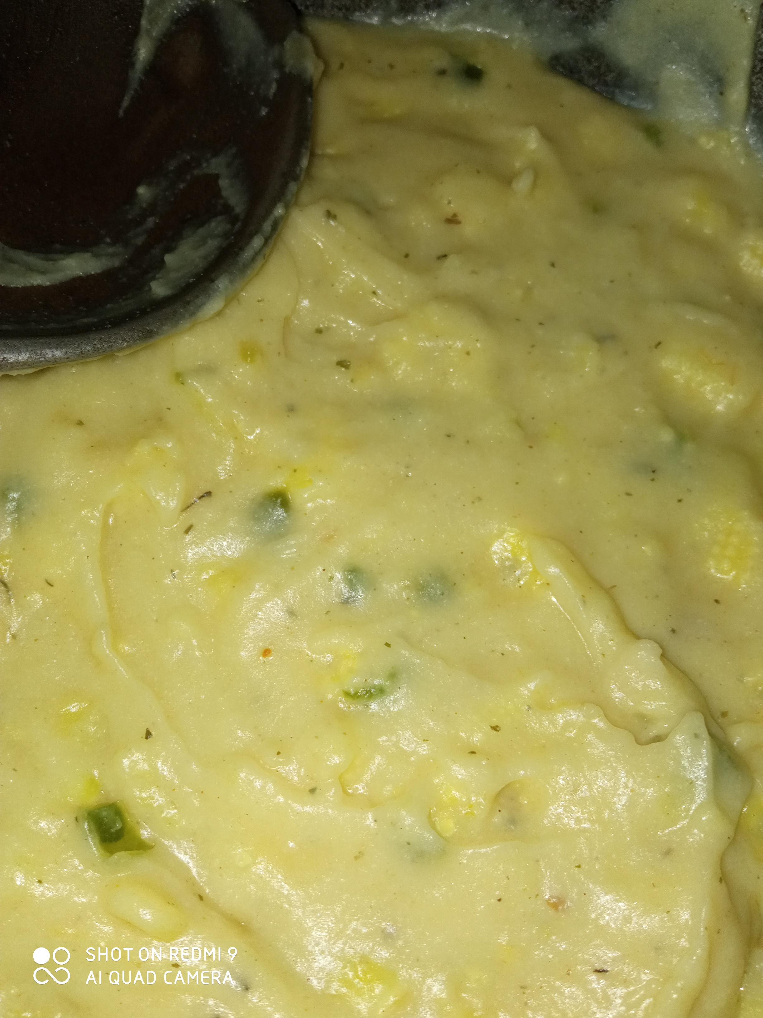Pasados uno minutos, cuando la cebolla empiece a verse transparente, incorporamos los chilotes pre-cocidos y sofreímos el conjunto un par de minutos más. Seguidamente incorporamos la maicena, previamente diluida en la leche con un punto de achiote, y mezclamos bien.