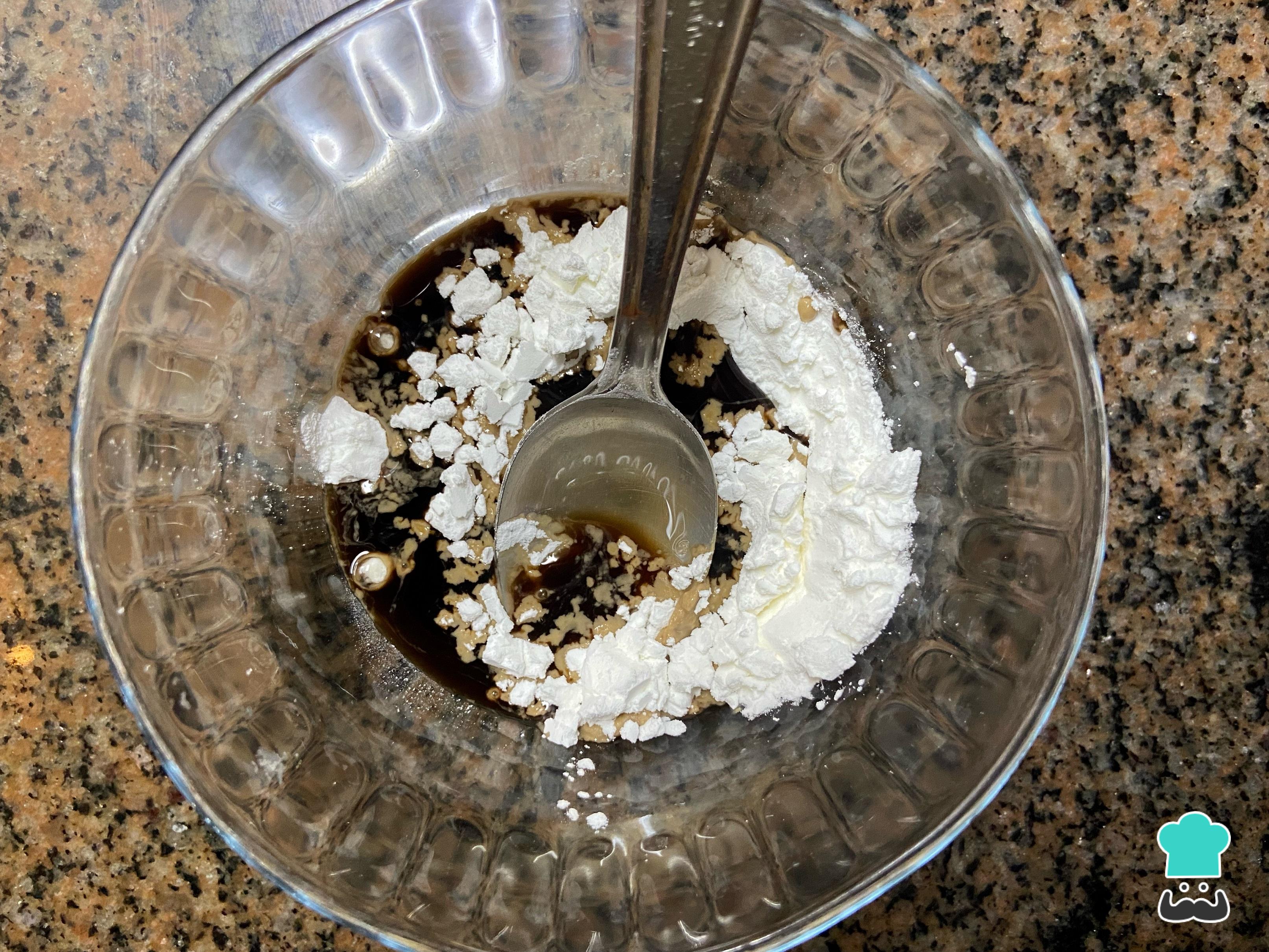 En un recipiente disuelve la maicena en la salsa de soja. Luego, condiméntala con el jengibre.