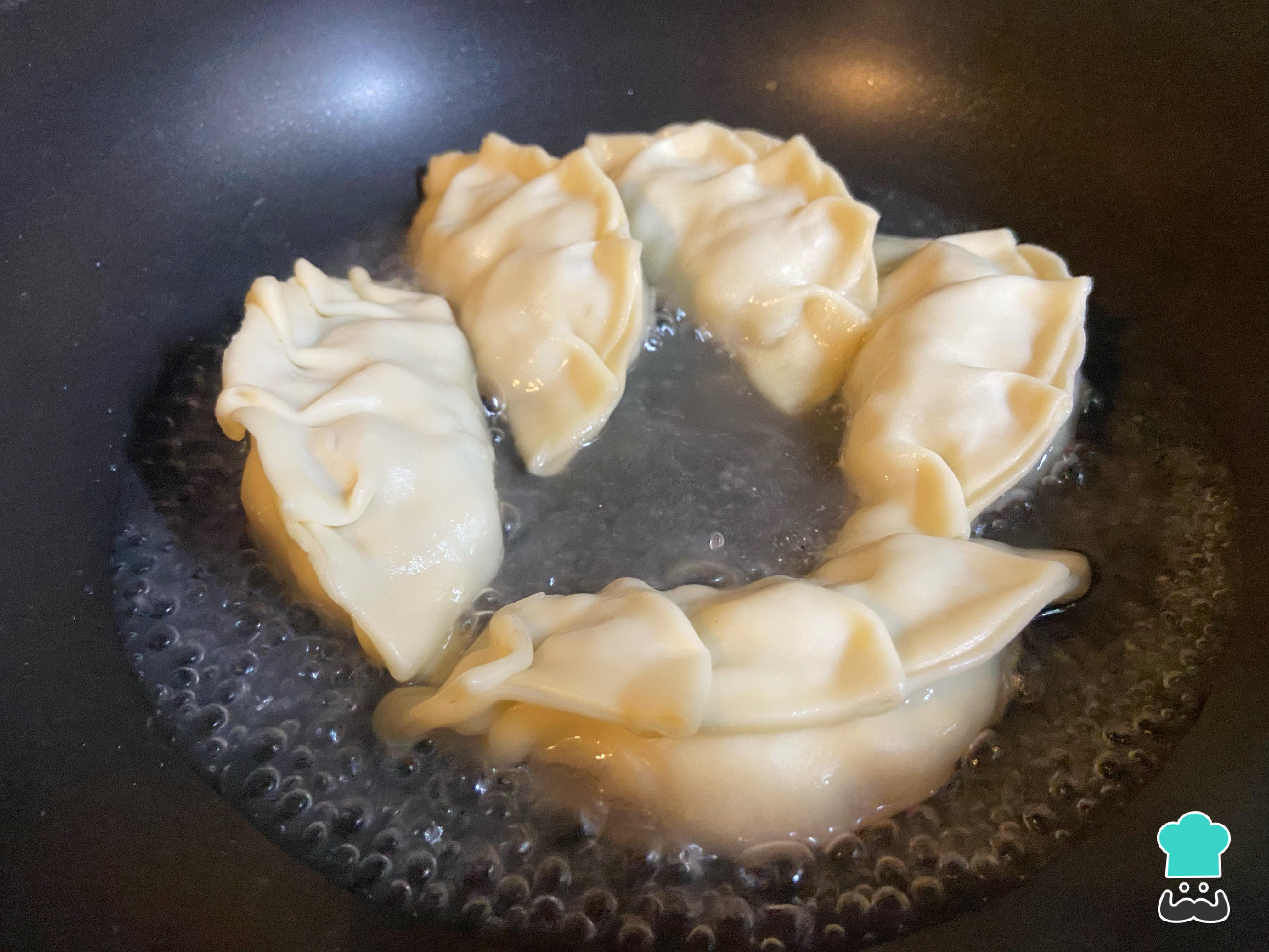 En una sartén caliente añade 1 cucharada de aceite y, con el fuego fuerte, dora las gyozas.