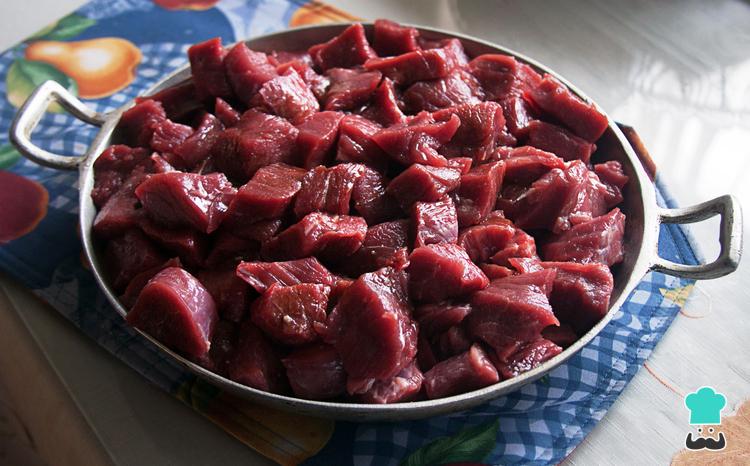 Toda hallaca comienza por la preparación del guiso. Para ello, corta la carne de res y la de cerdo en porciones grandes.