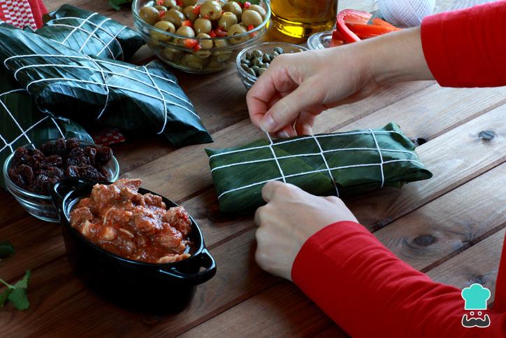 Amarra las hallacas haciendo un nudo con forma de cuadrícula tal y como puedes observar en la fotografía.