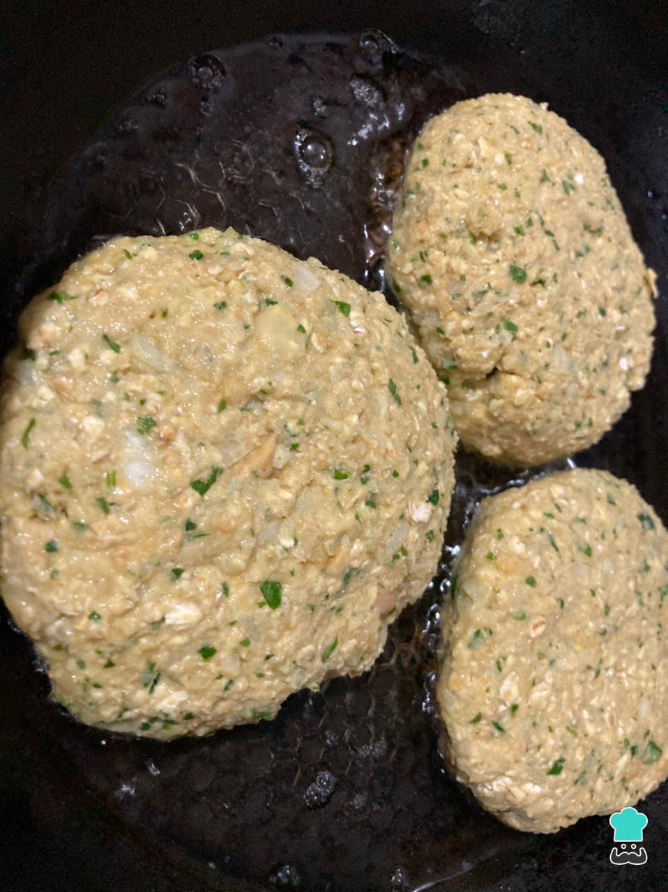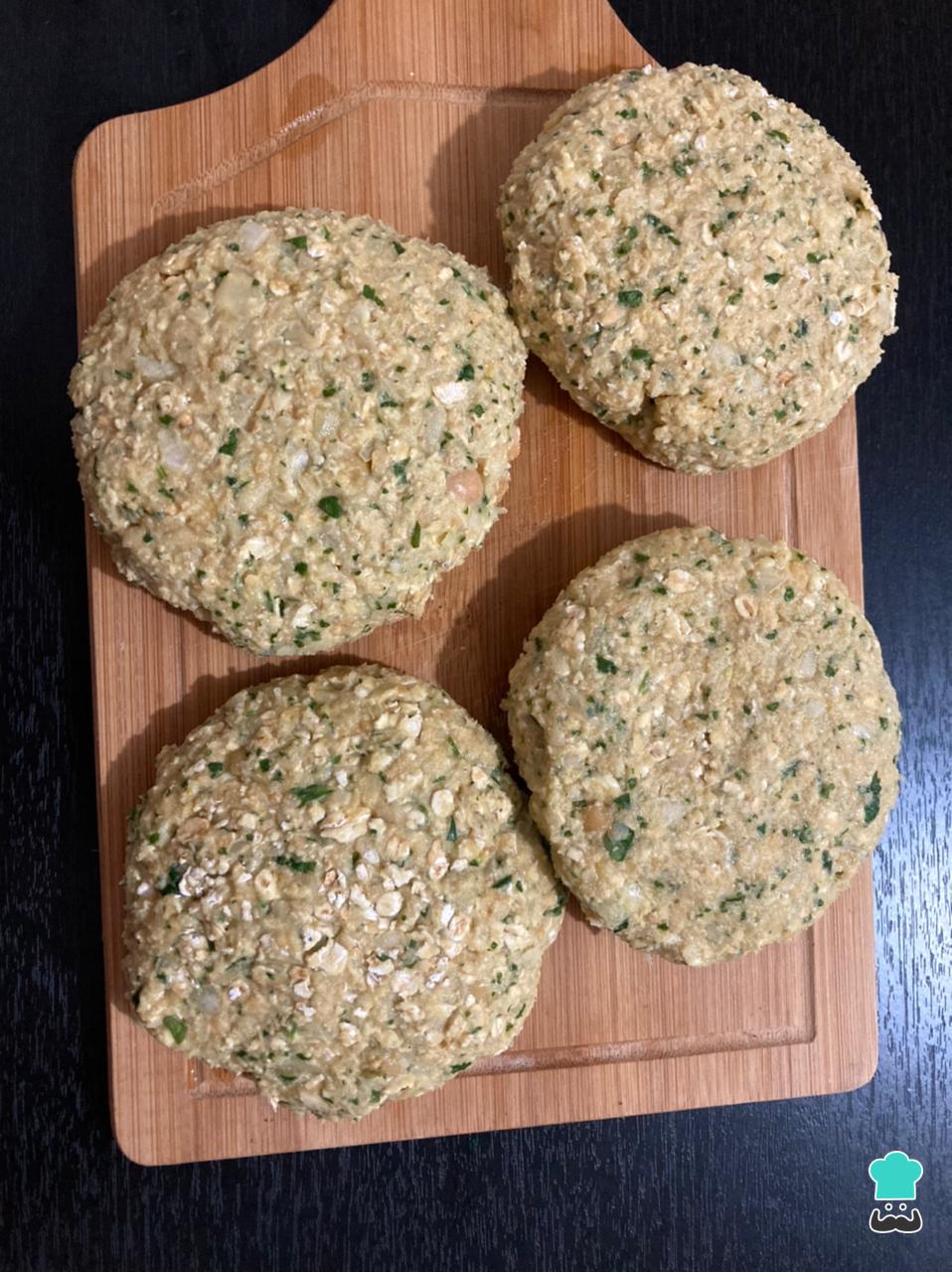 Con las manos debes dar forma a las hamburguesas árabes y llevar al refrigerador aproximadamente unos 15 minutos. En este paso acostumbro a incluir un poco de avena entera para sustituir al panko y al pan rallado. ¡Ya casi están listas las hamburguesas vegetarianas!