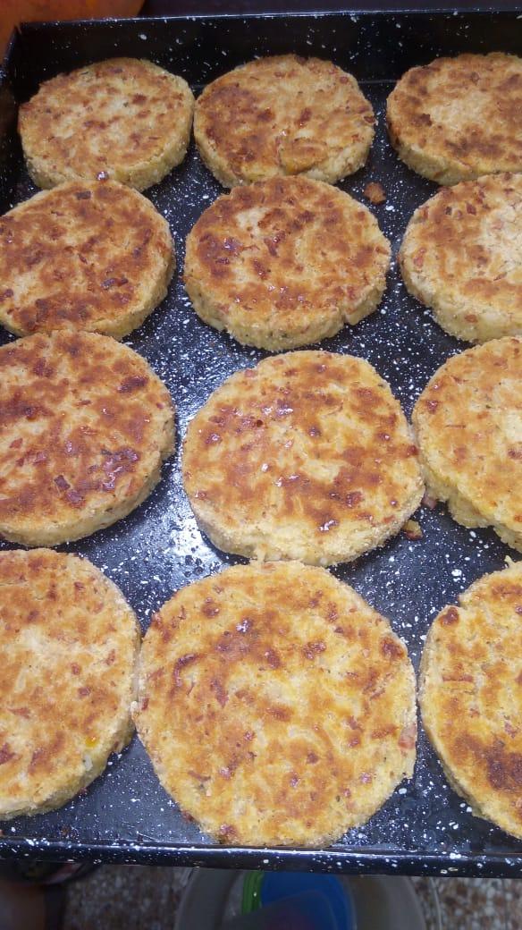 Una vez formadas las hamburguesas, las dejamos reposar al menos 10 minutos en la nevera. En este punto se podrían también congelar, que es lo que yo hice con un par. Se mantienen genial y luego al comerlas están tan ricas como recién hechas. Para comerlas, ponemos un poco de aceite de oliva en una sartén y las cocinamos 3-5 minutos por cada lado (si las hacéis tan grandes como yo os recomiendo algo más de tiempo).