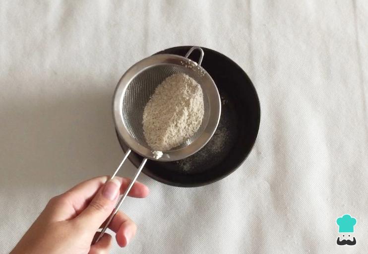 Pasa la avena por un colador para obtener una harina mucho más fina. Los restos que queden en el colador son el salvado de avena, que también puedes guardarlo y utilizarla para múltiples recetas. Por ejemplo, puedes hacer galletas de avena con este salvado.