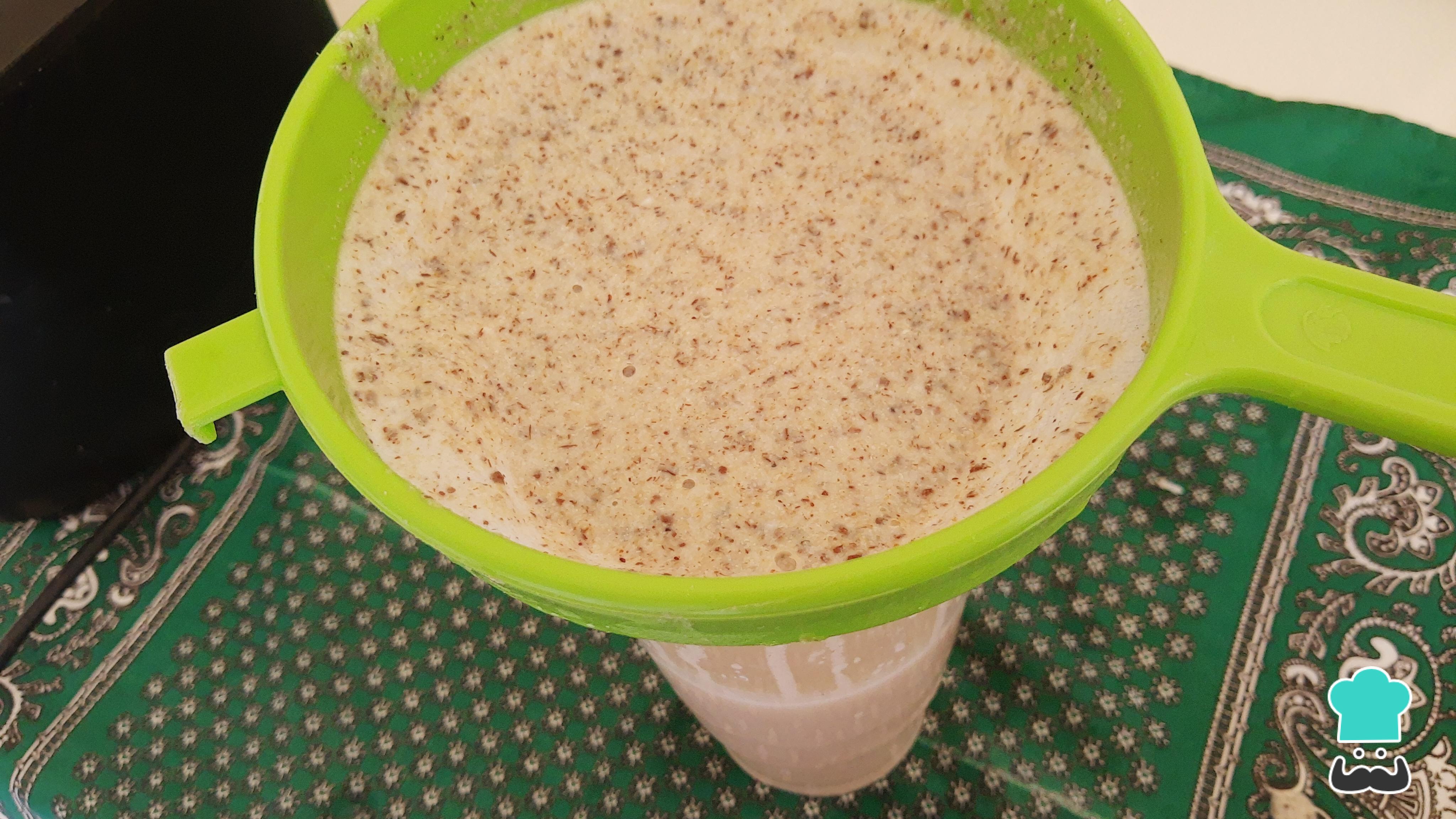 Cuela la mezcla para deshacerte de la pasta de arroz, amaranto y canela que haya quedado.