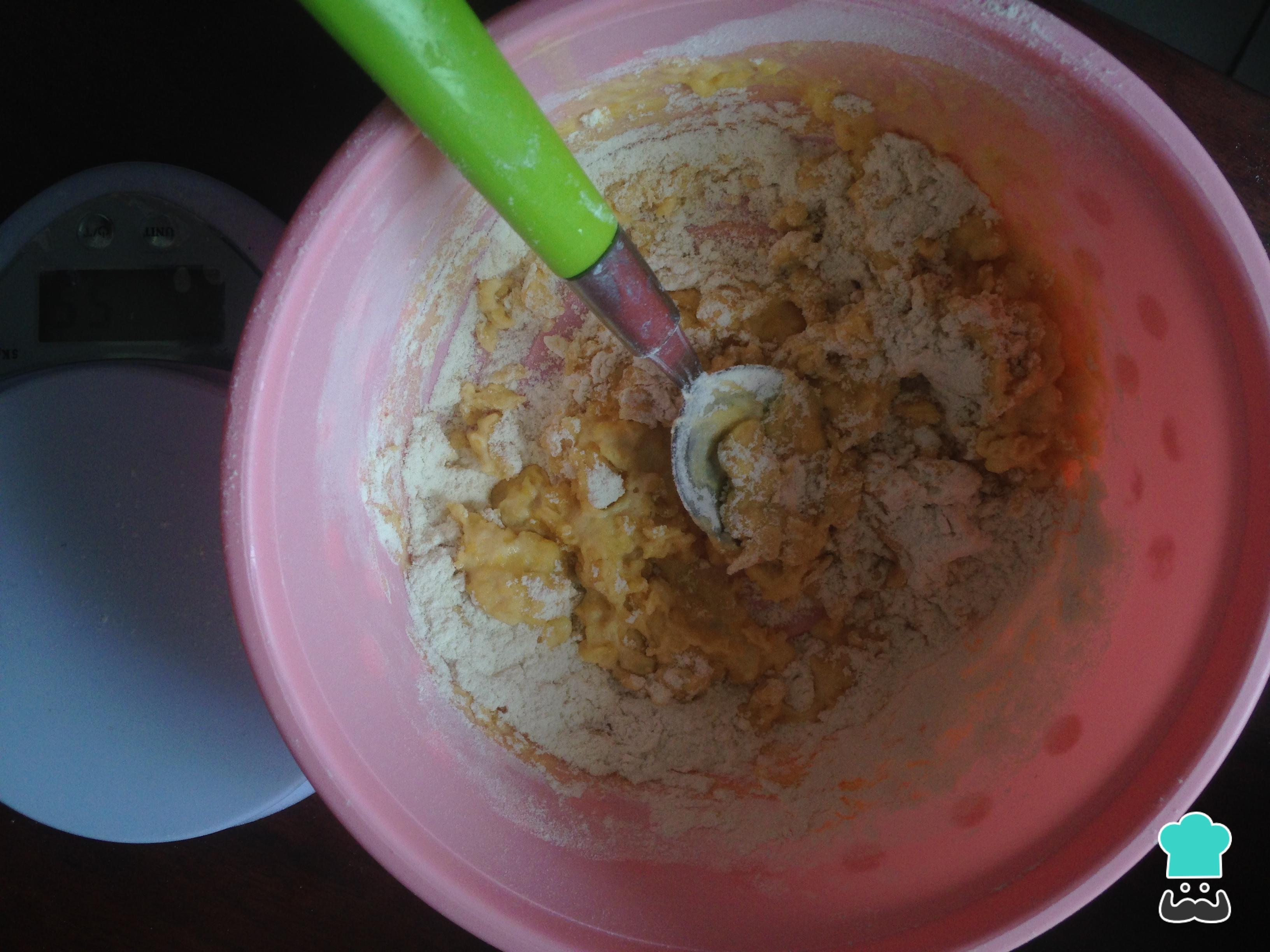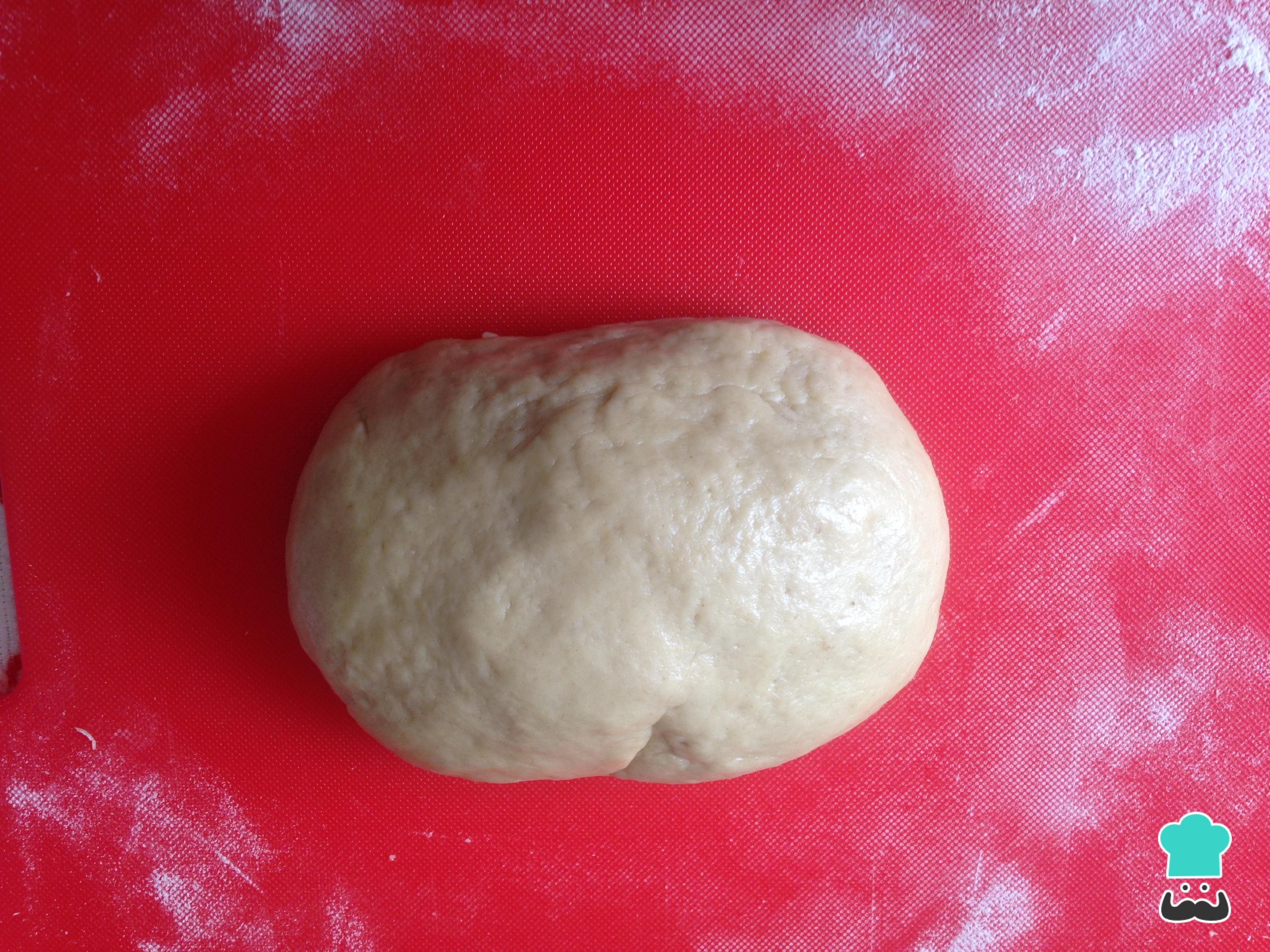 Amasa por 3 minutos aproximadamente en una superficie lisa con un poco de harina o hasta que la masa del kuchen de nuez no se pegue de los dedos.