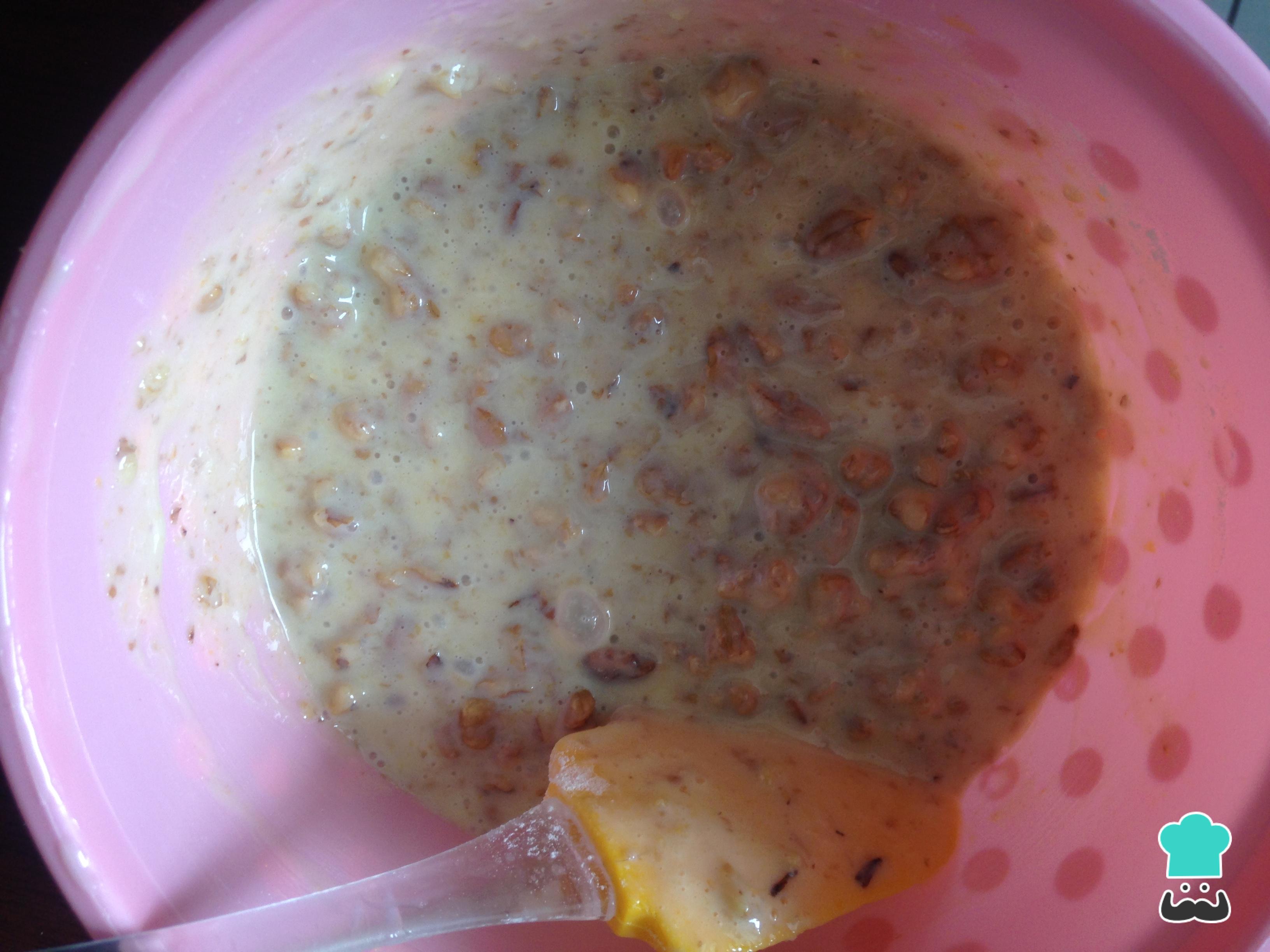 Reúne los ingredientes del relleno del kuchen de nuez con leche condensada en un bol y revuelve para integrarlos bien.